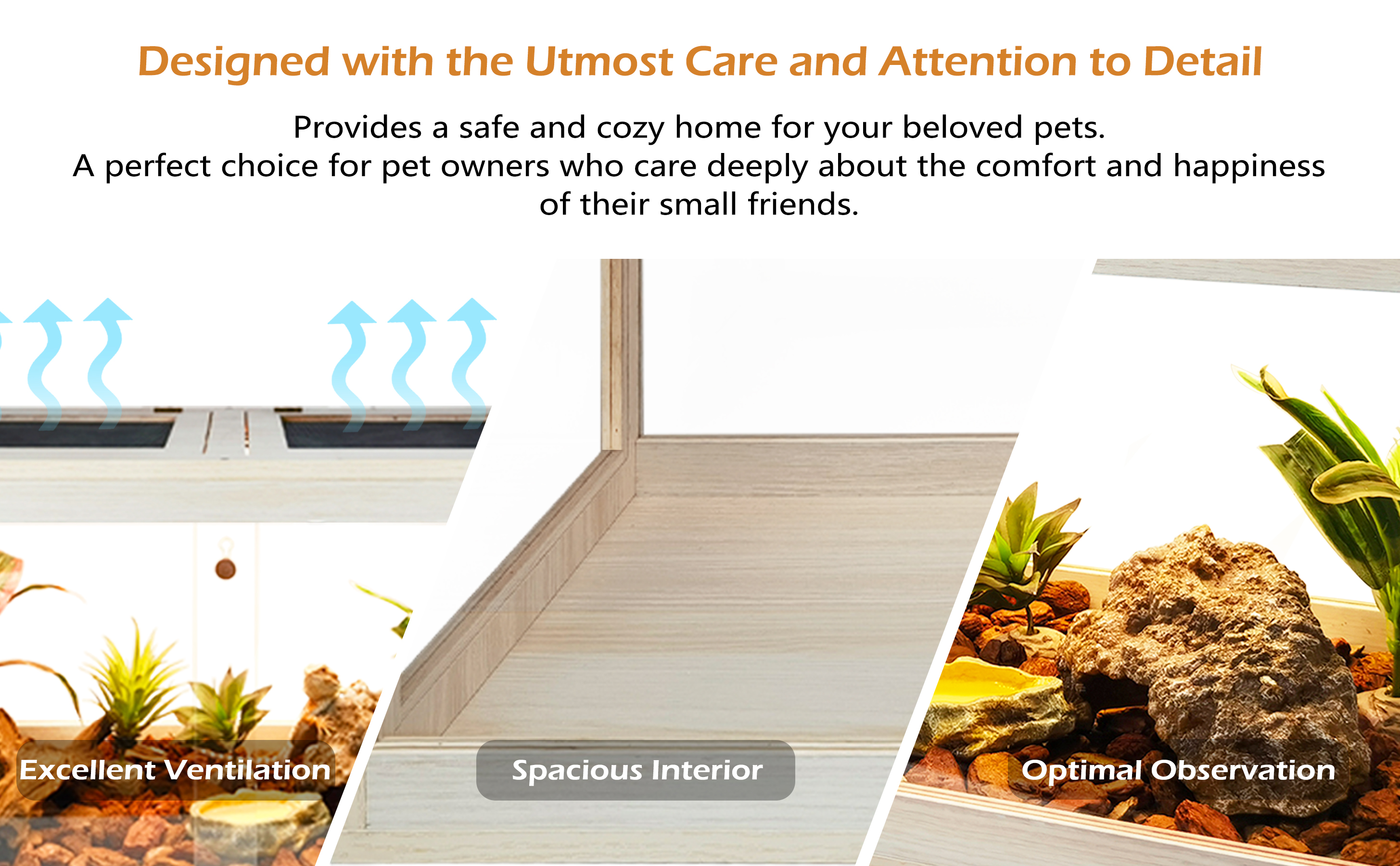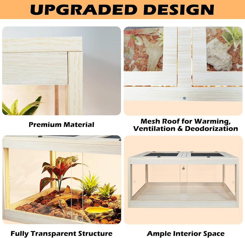 【Premium Reptile Enclosure】We offer an excellent choice for reptile enthusiasts, providing a comfortable habitat for your pet reptiles. Meticulously crafted from top-tier wood and acrylic materials, our enclosure boasts transparency and durability. Note: This tank is not suitable for storing water.