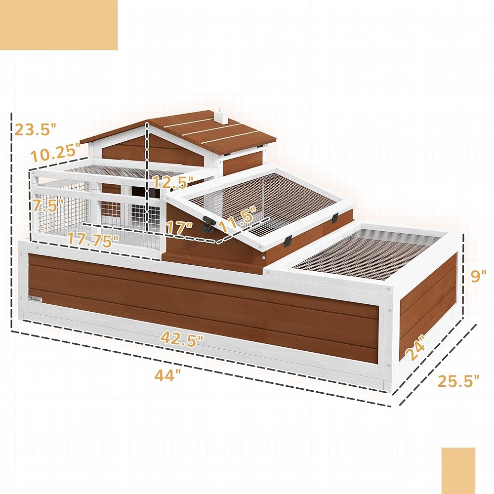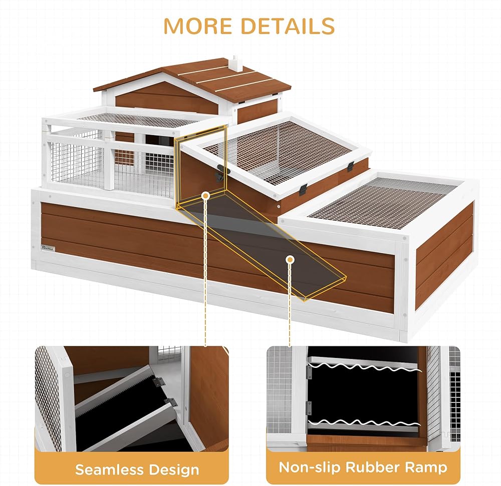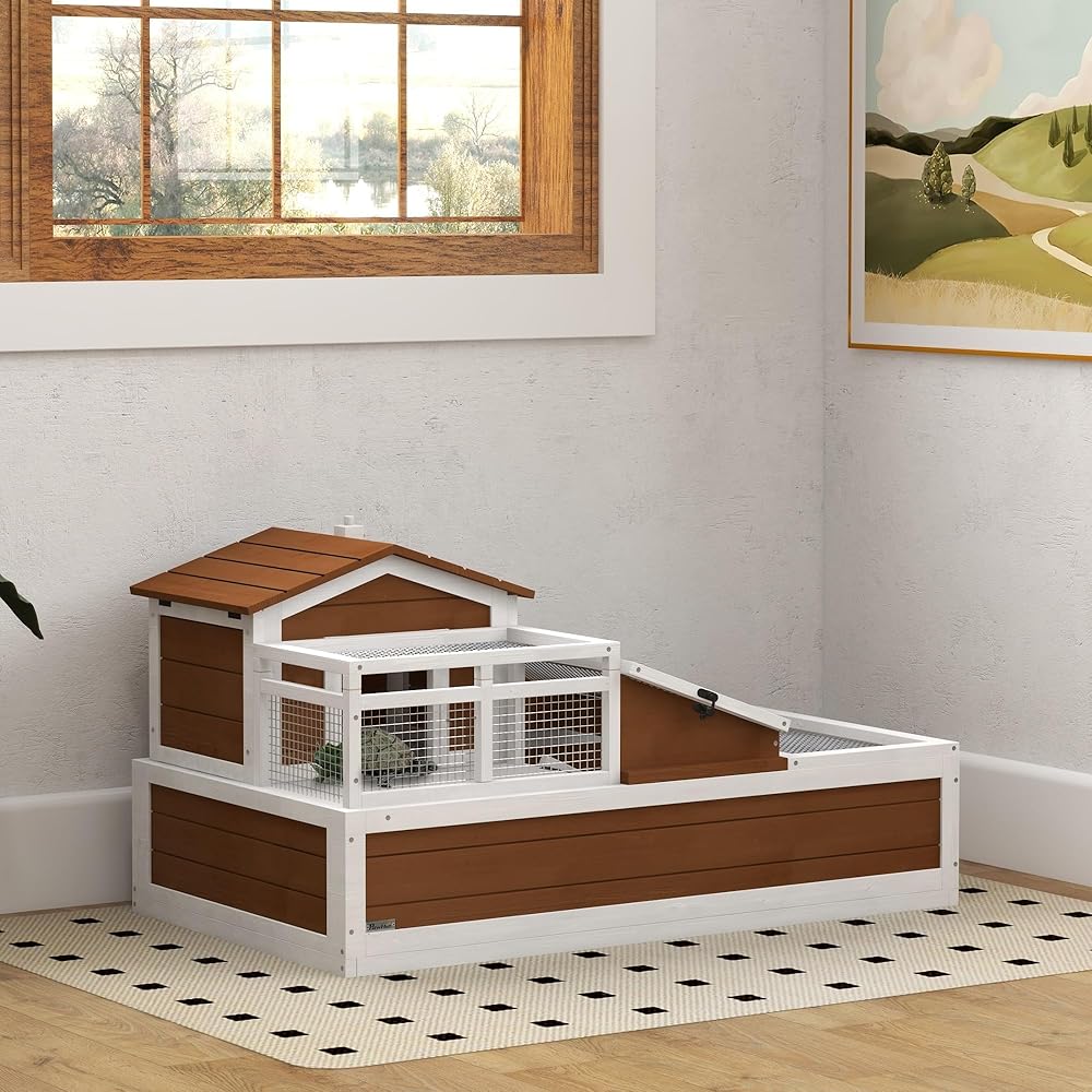 PawHut 3- Room Tortoise House Habitat with Balcony & 2 Stories, Indoor/Outdoor Wooden Tortoise Enclosure with Ladder, Tray, Openable Roof, Large Reptile Cage, 44" x 25. 5" x 23", Coffee