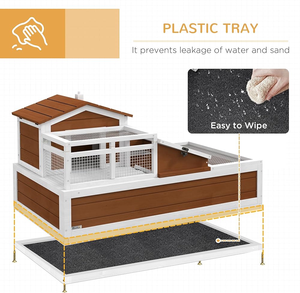 Plastic Tray: Ensure your tortoise table is easy to clean. Our model includes a plastic tray that prevents leakage of water, sand, and other debris so dirt won't fall through.