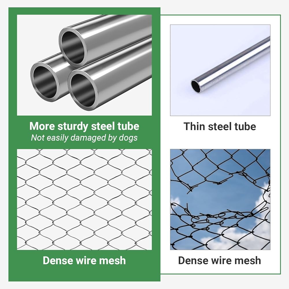 【Easy installation】Built with solid galvanised steel, this dog kennel is designed to withstand the elements. The spring-buckle-connected design makes installation quick and hassle-free, saving time and effort.