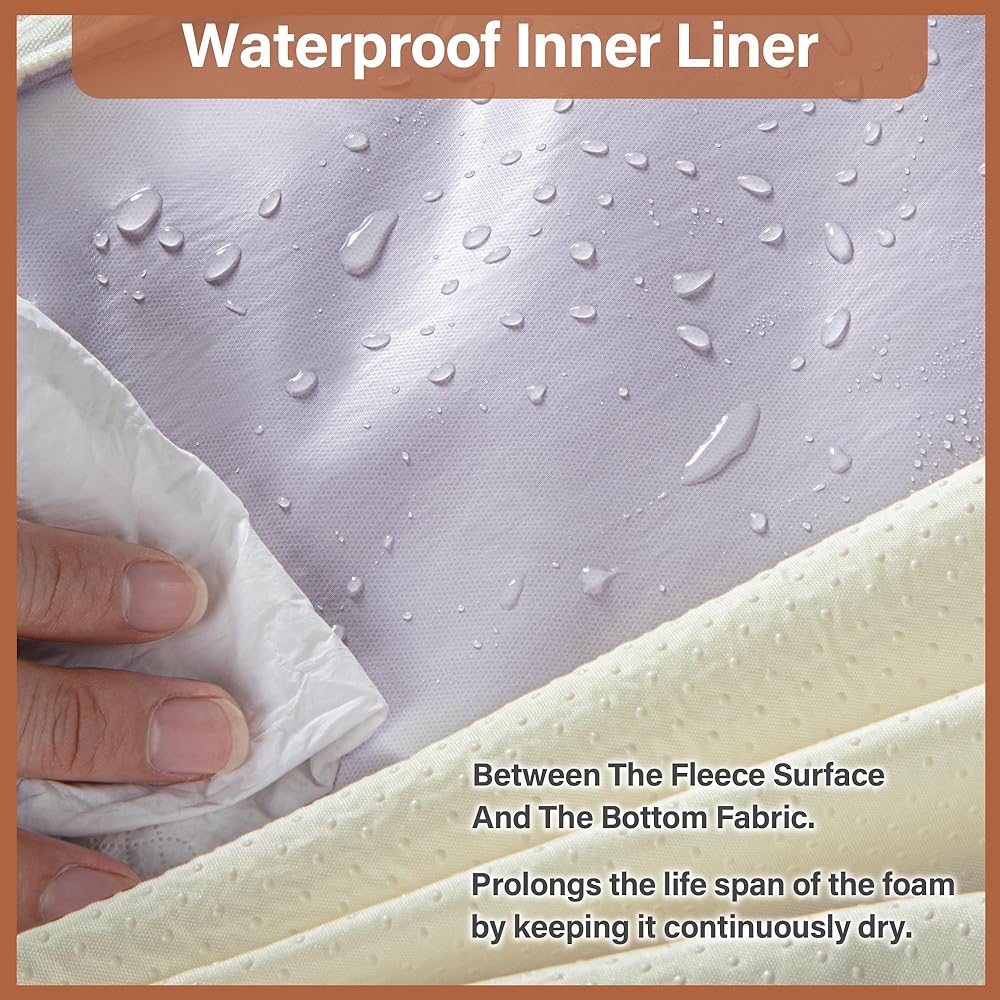 【مضاد للانزلاق ومضاد للخدش】تم بناء سرير الكلب المقاوم للماء من قماش في الجزء السفلي والجوانب، وهو متين بما يكفي لتحمل البلى والتمزق اليومي. تساعد النقاط البلاستيكية الموجودة في الأسفل على منع سرير الحيوانات الأليفة من التحرك عندما يصعد حيواننا الأليف أو ينزل منه، مما يقلل من الانزلاق ويحمي كلبك، مما يوفر لصديقنا الصغير إحساسًا قويًا بالأمان. توجد طبقة مقاومة للماء مثبتة على الغطاء لحماية الرغوة من البلل.