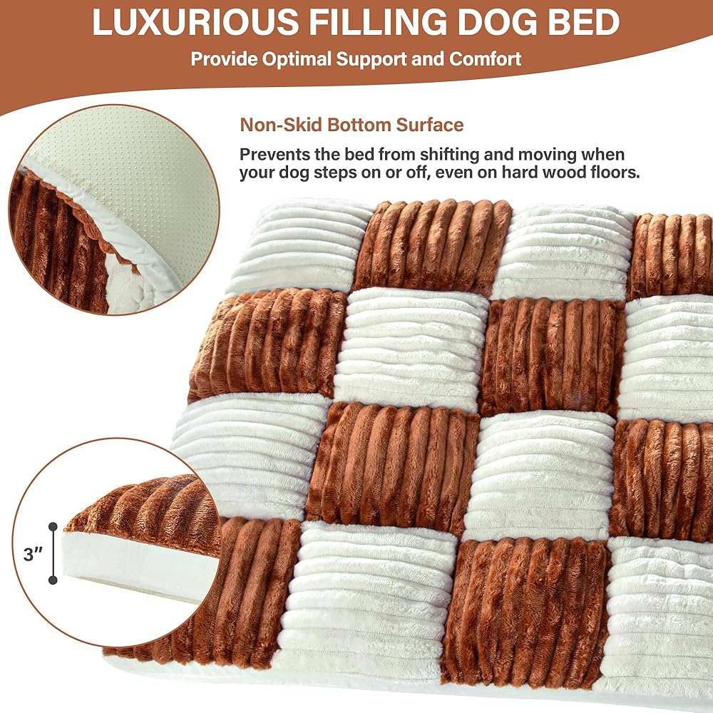 【دعم ناعم】أريكة سرير الكلاب الكبيرة بتصميم مرتبة عالية 3 بوصات، مصممة لمنح حيوانك الأليف دعمًا لا مثيل له لنوم عميق وحالم. مرونة ممتازة تدعم وقدرة تعافي طويلة الأمد، توفر راحة للكلاب بشكل فعال مع دعم قوي للمناطق العظمية والمفاصل، وتخفيف الضغط، وتخفيف آلام المفاصل، وآلام الجسم، والتهاب المفاصل.