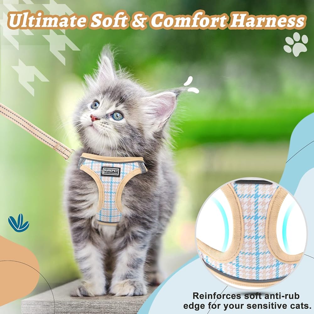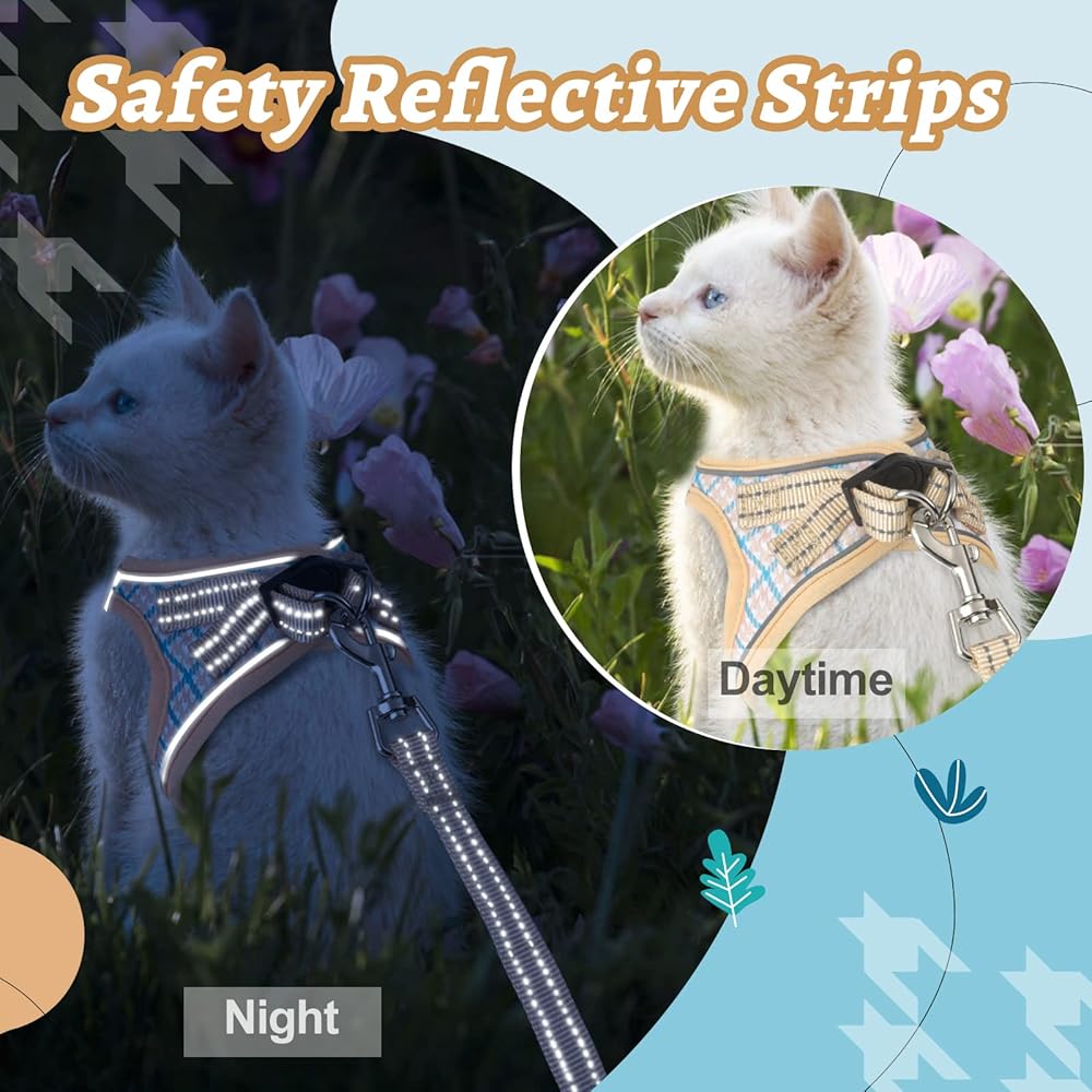 Cat Harness and Leash for Walking, Adjustable Soft Harness for Kitten Puppy Small Cats, Reflective Escape Proof Cats Vest Harness Easy Control for Travel Adventure