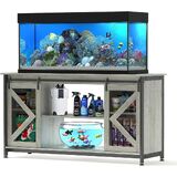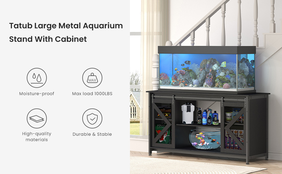 【Convenient Storage Cabinet】The spacious storage cabinet in the middle of the stand, which can hold up to 100LBS, allows you to store fish accessories: fish food, fish nets, gravel cleaner, water conditioner, etc. This design not only allows easy access to what you need but also maximizes limited space and keeps the aquarium area clean and tidy