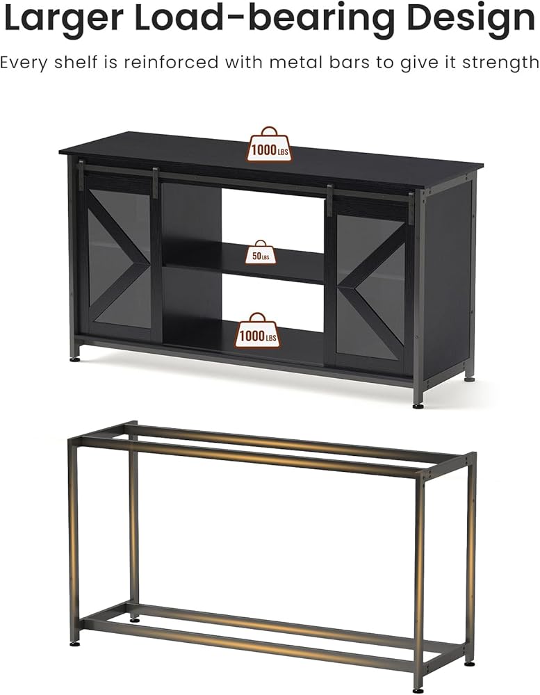 75-90 Gallon Fish Tank Stand with Cabinet, Heavy Duty Metal Large Aquarium Stand for Accessories Storage, Reptile Tank Turtle Terrariums Table, 1000+ LBS Capacity, 58.9"x19.7"x32.6" H, New Black