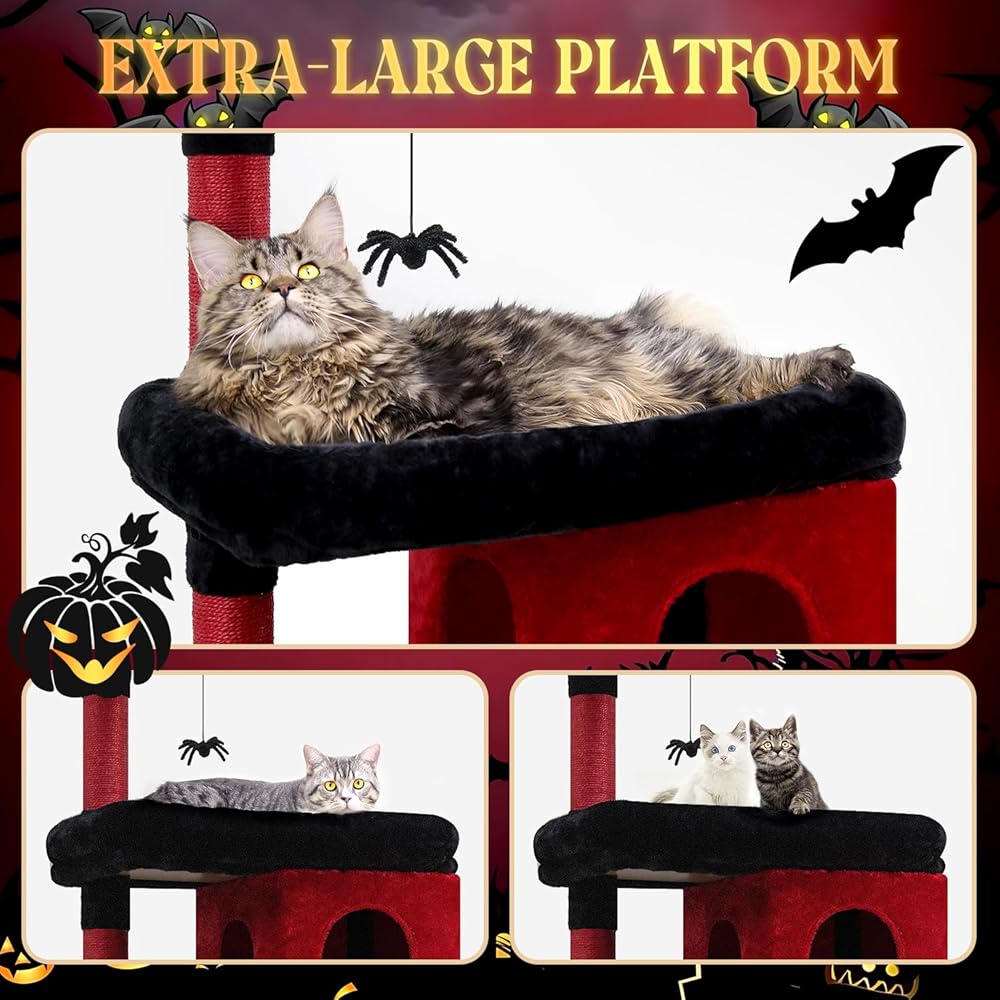 OVERSIZED PADDED PLATFORM - This large cat tree for big cats features an extra-large platform (21.7"x 11.8"), enlarged by 83%, allowing adult large cats to enjoy their rest in this spacious and cozy area comfortably.