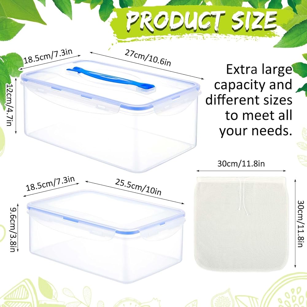 Yogurt container: 10.6 x 7.3 x 4.7 inches, 10 x 7.3 x 3.8 inches