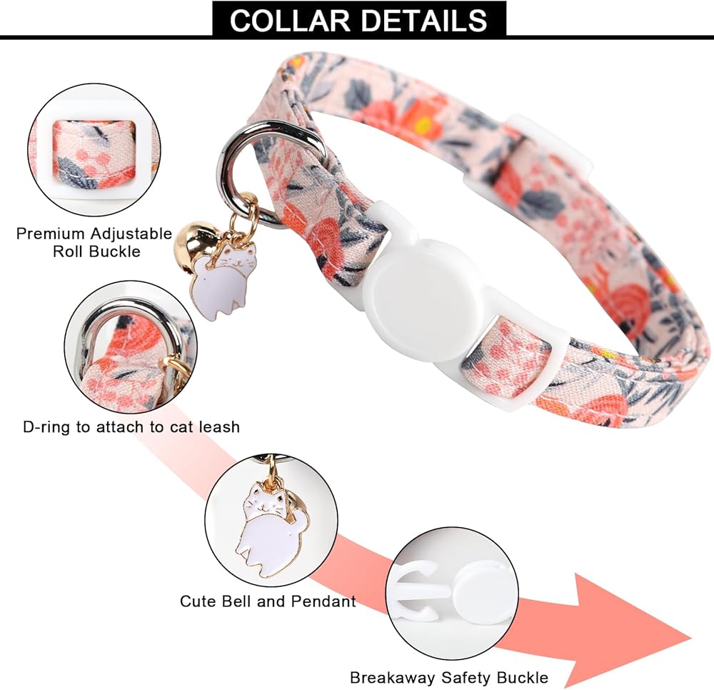 ♥ Unique style paws design ♥ : Colorful flowers/blue-green banana leaves/playful dots/elegant squares, Unique style paws cat collar is cute and fresh, specific style design for all cute cats, boy & girl pets