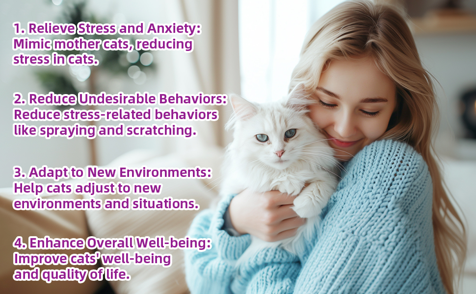 Natural and Safe - This cat diffuser calming refill is making it safe for both cats and humans. It works by mimicking the comforting pheromones produced by mother cats, continuously releasing strong signals of safety and comfort, thereby soothing your beloved cat