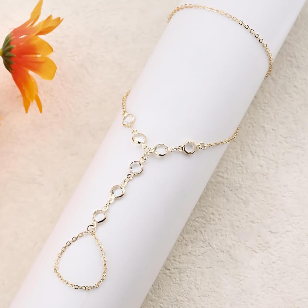 Ring Bracelet Hand Chain Bracelet Dainty Gold Finger Bracelet Turquoise Zircon Ring Hand Chain Slave Bracelets Simple Boho Summer Beach Jewelry for Women