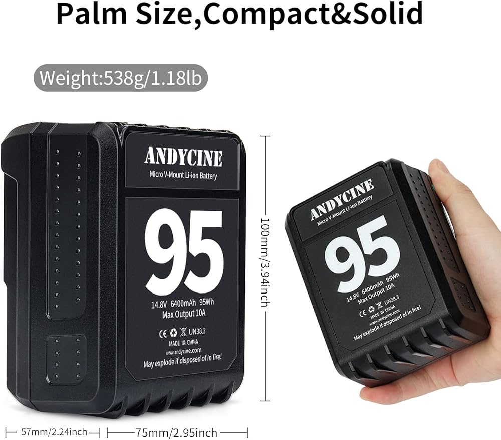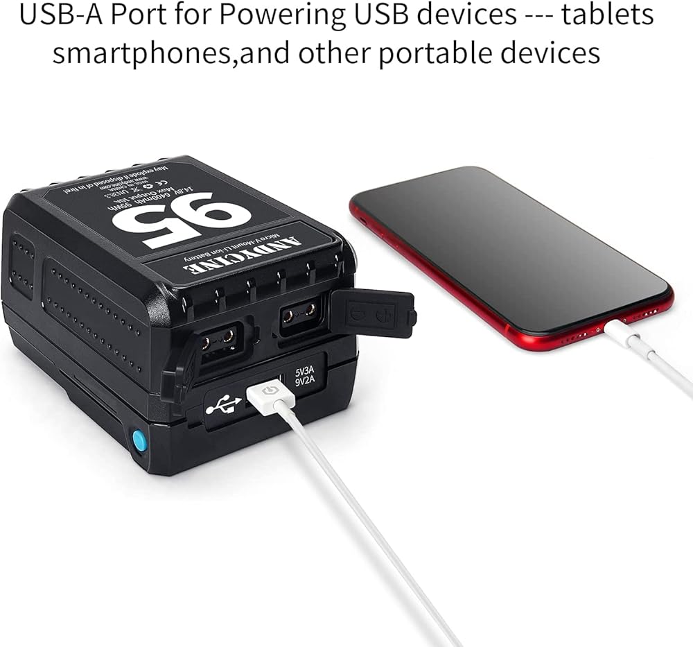 ANDYCINE Mini V-Mount Battery V-Lock 95Wh 10A Draw Batteries with Dual D-Tap & USB-A Output to Power Camcorder Camera,Compatible with BMPCC 4K,6K, Led Studio Lights(Battery Charger NOT Includ)