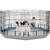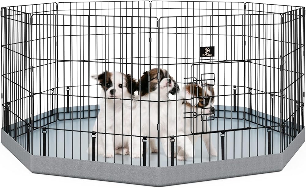 PJYuCien Dog Playpen, 8 Panels 24’’H Dog Pens Indoor with Bottom Pad, Metal Foldable Pet Puppy Exercise Fence Crate Kennel, Better for Small Animals,Grey