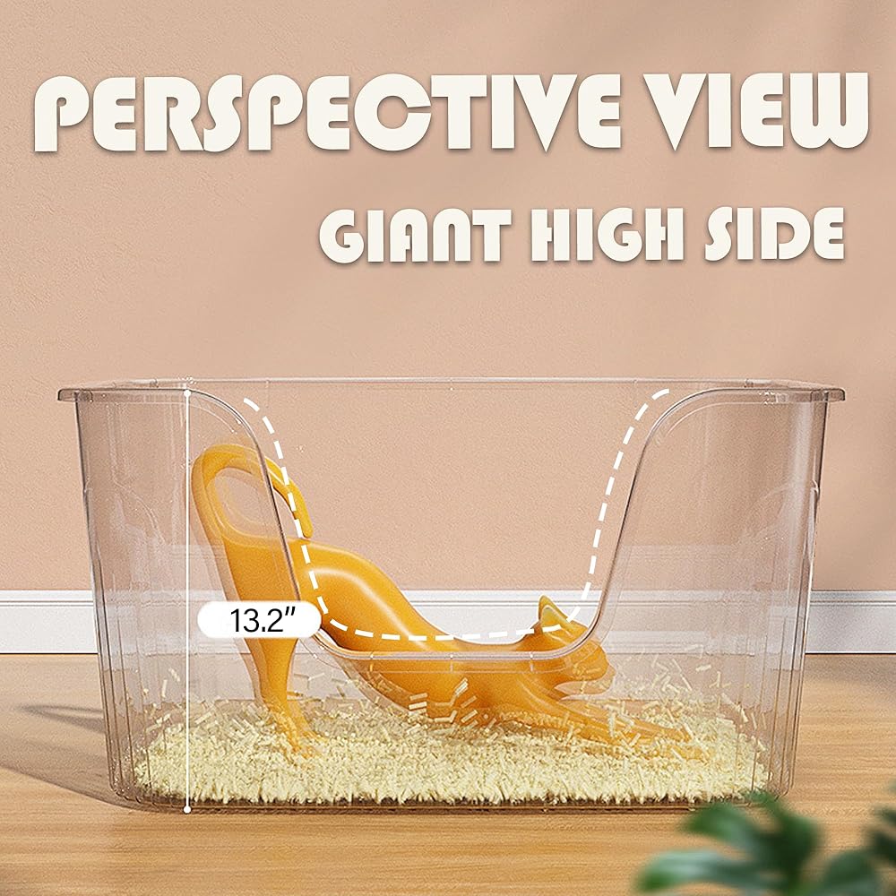 [Satisfy Cats] Size: 30.7 '' (L) * 20.9 '' (W) * 16.1 '' (H). The ancestors of kitties originated in the desert, and the giant litter tray brings cats a pleasant "treasure" experience of freely digging sand in the desert.