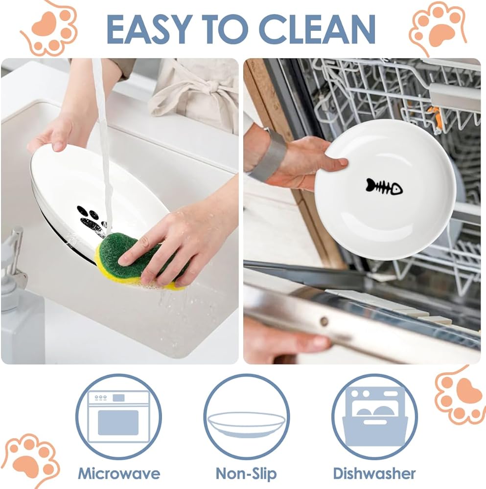 Whisker Friendly Design:Our ceramic cat bowls are specifically designed with a wide and shallow shape to prevent your beloved kitten's whiskers from touching the rim while they eat. This cat food dish unique design reduces whisker anxiety and stress, ensuring a more enjoyable mealtime for your adorable cats.