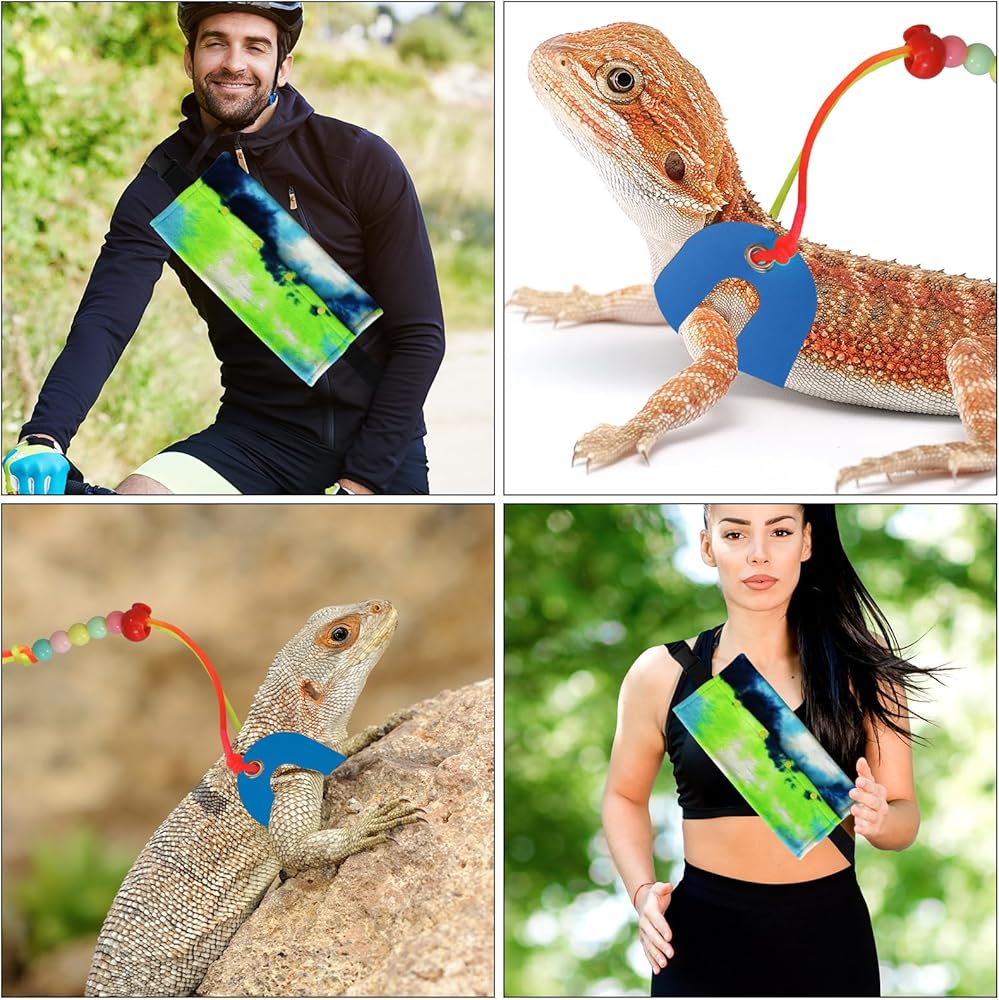Our products are made of safe and durable materials, the rope is made of super soft leather bundle and durable nylon rope. The soft and snug leather will not harm the lizard, the durable and lightweight nylon rope is odorless and non-toxic, and the pet backpack is made of soft coral fleece that is very warm and pet friendly. The carrier has a unique opening design to better fit the baby's body, making it easier to put on and take off and more comfortable to move around. There is an adjustment clip on the rope so you can tighten it enough to fit the shape of your reptile, so it is also suitable for small animals such as geckos, crowned geckos, lizards, chameleons, small lizards iguanas, etc. Backpack capacity is also large, no matter what size of reptile pets can comfortably stay inside. A package contains three sizes of straps, and as your pet grows you can change him to the right size.