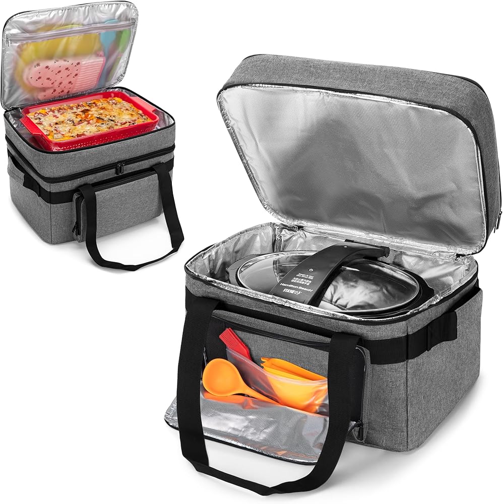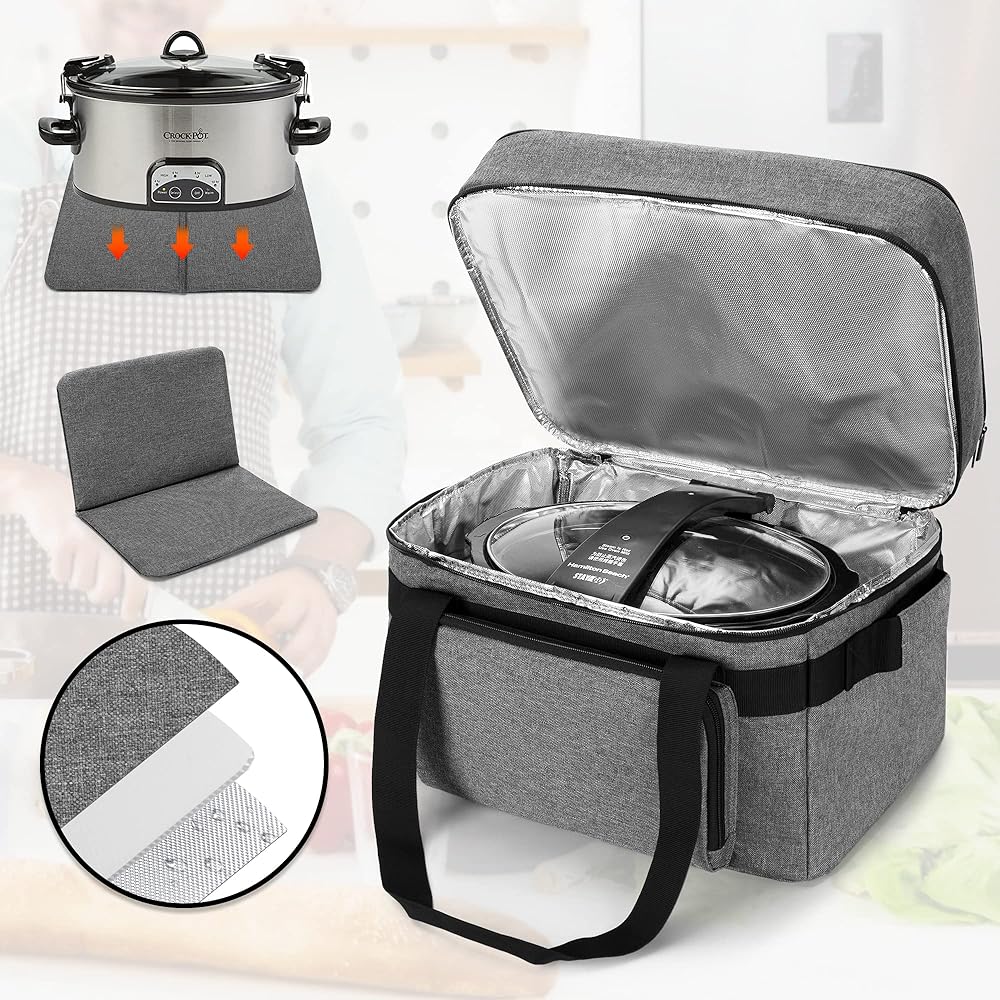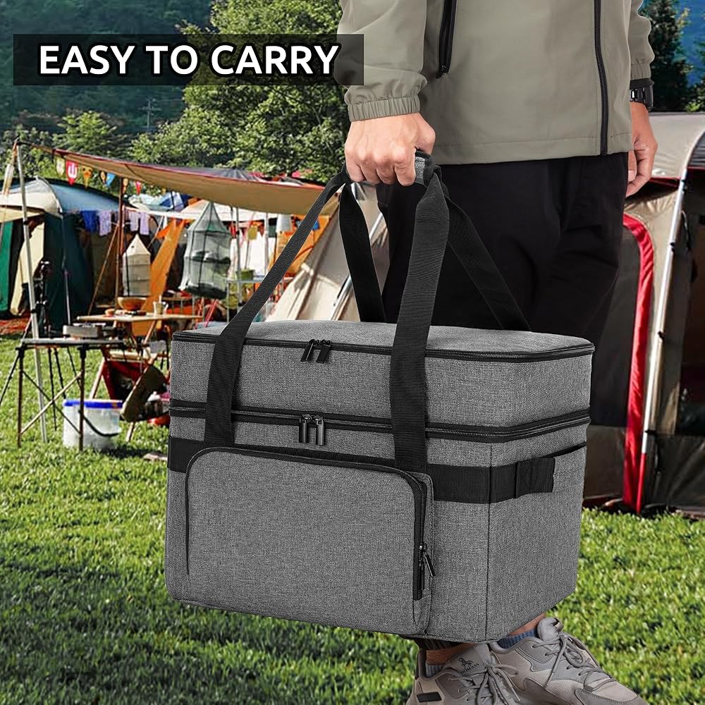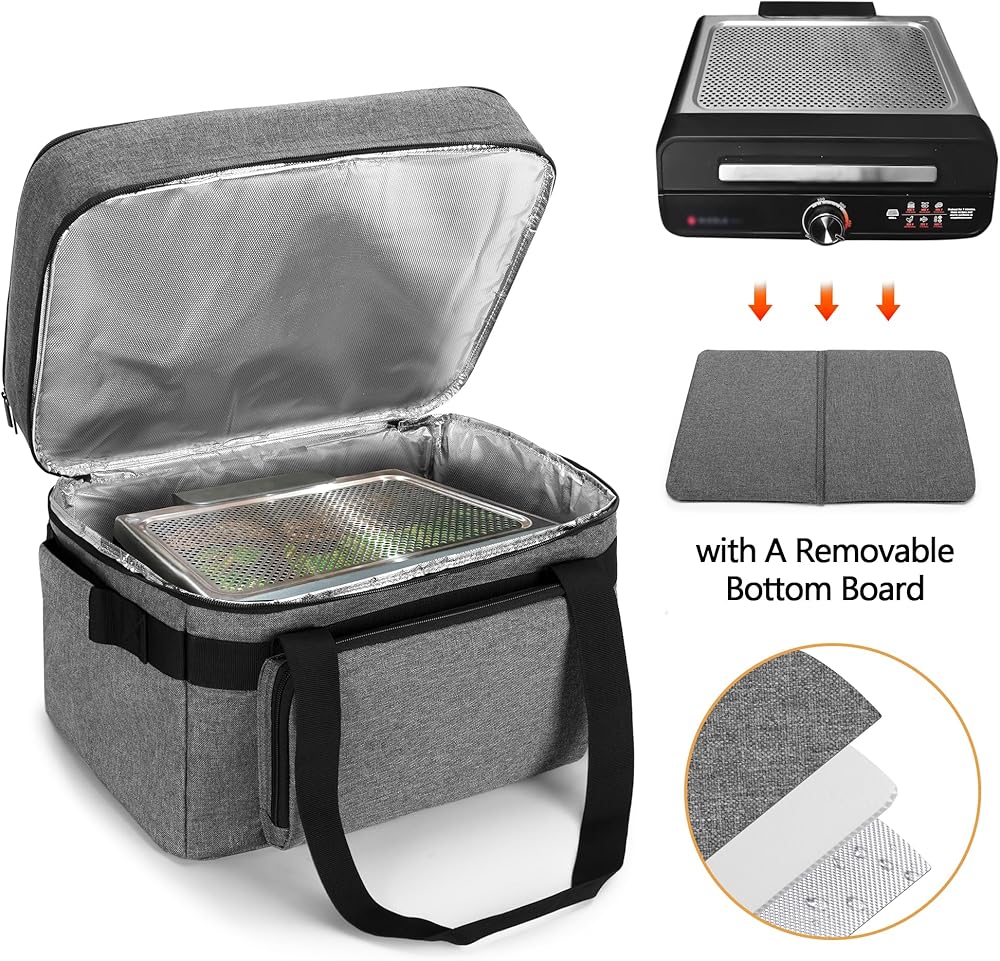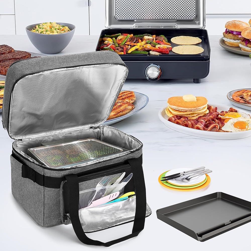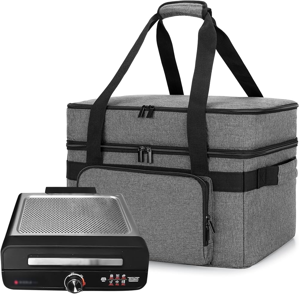 LUXJA Indoor Grill Carrying Bag with Bottom Pad Compatible with Ninja Sizzle GR101 Smokeless Grill, Double Layer Electric Grill Bag with Plates Section (Bag Only), Gray