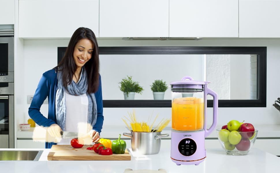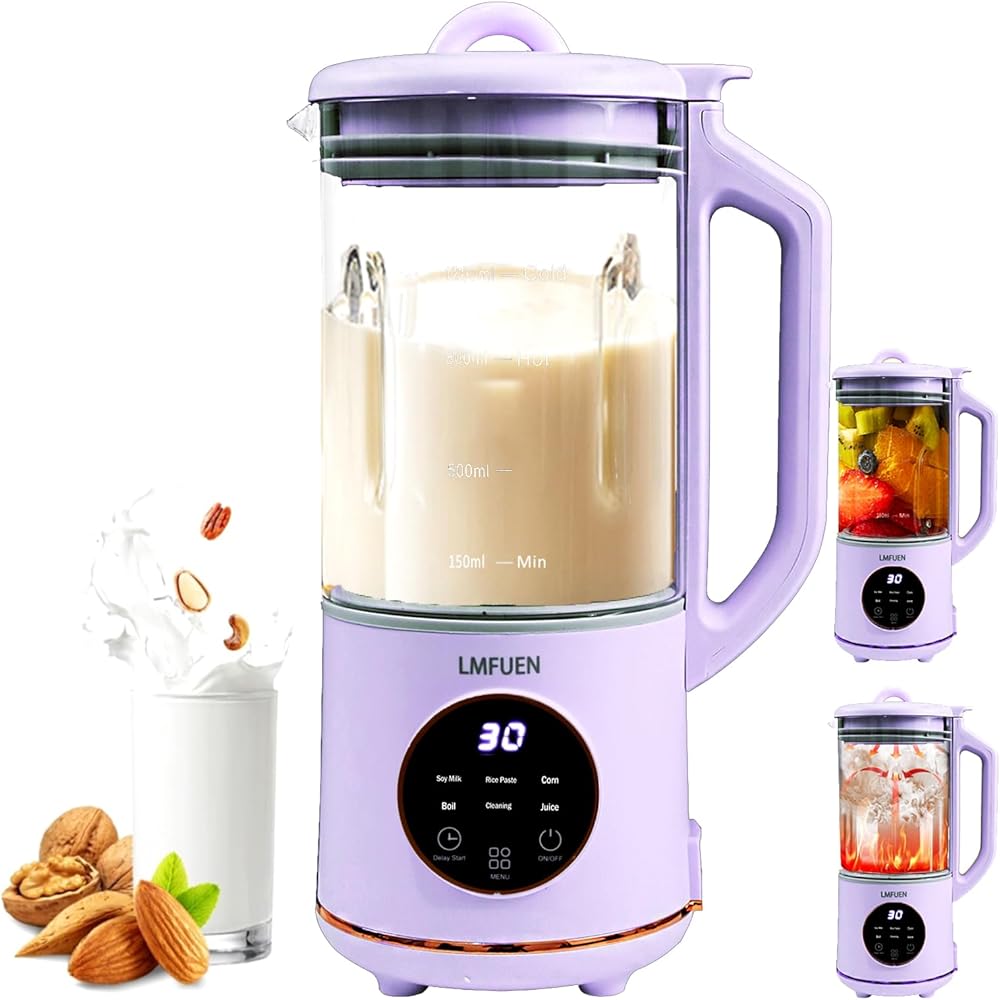 • 【NEW UPGRADED 10 BLADES MILK MAKER】 - The LMFUEN machine features unique custom blades that have been tested for hundreds of hours. 10 sturdy crossed stainless steel blades can handle any food with ease. The quadrilateral stirring column allows for repeated collisions of ingredients without missing a beat, making smooth beverages. The non-stick coating allows you to avoid burning problems and make it easier to clean. Heat-resistant, visual glass design lets you know every second of the blending process.