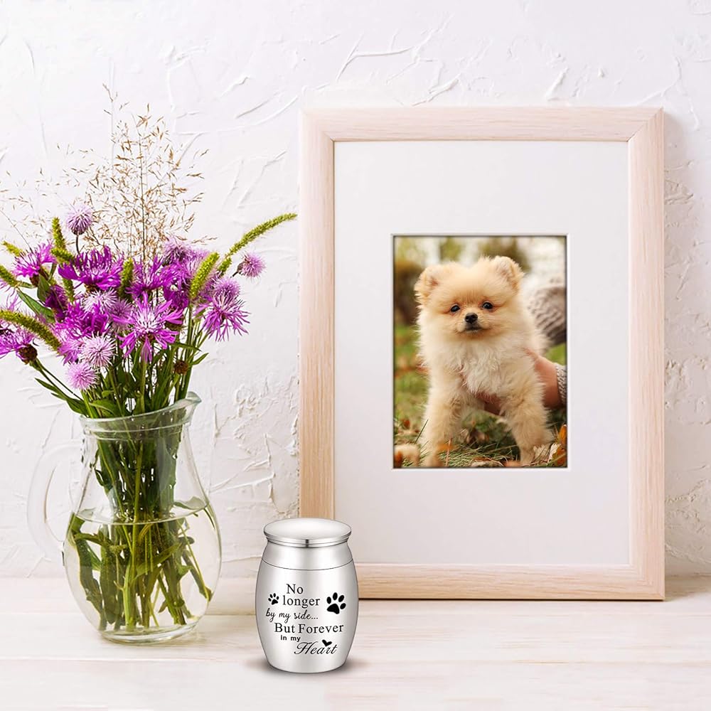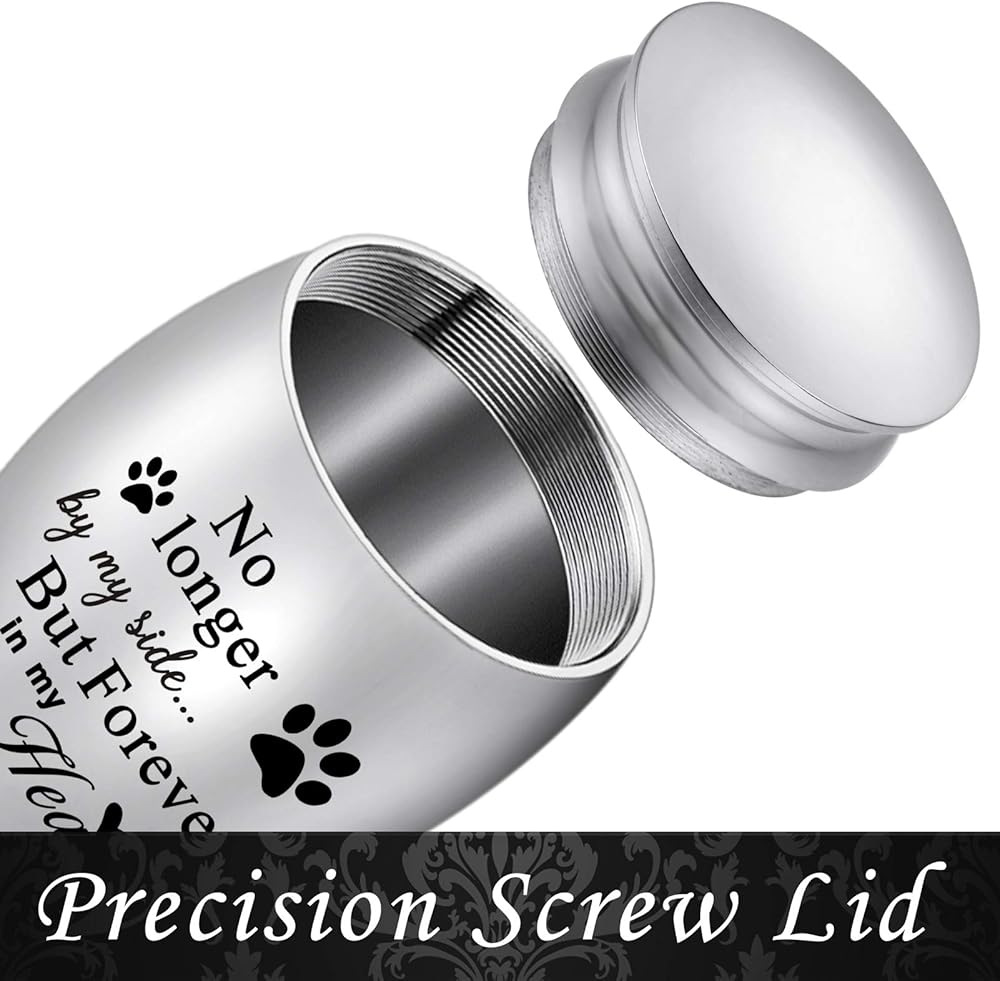 XIUDA 1.57 inches Mini Pet Memorial Small Urns for Dog and Cat Ashes, Stainless Steel Cremation Urn, Pet Paw Print Keepsake Urn for Ashes - No Longer by My Side Forever in My Heart