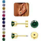 【Birthstone Stud Earring】With a screw back design, This birthstone stud earrings for women are easy to put on and take off. The pin thickness of 0.8mm and length of 6mm is suitable for most women and girls.