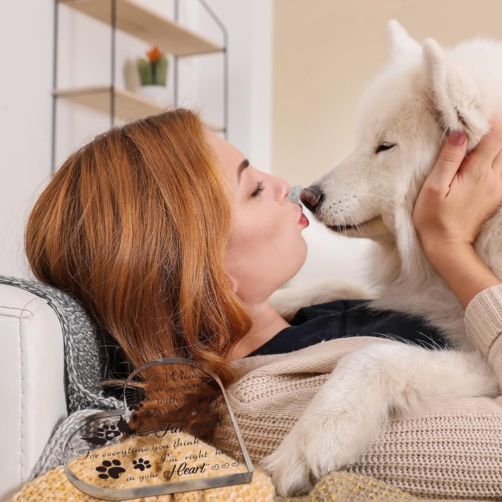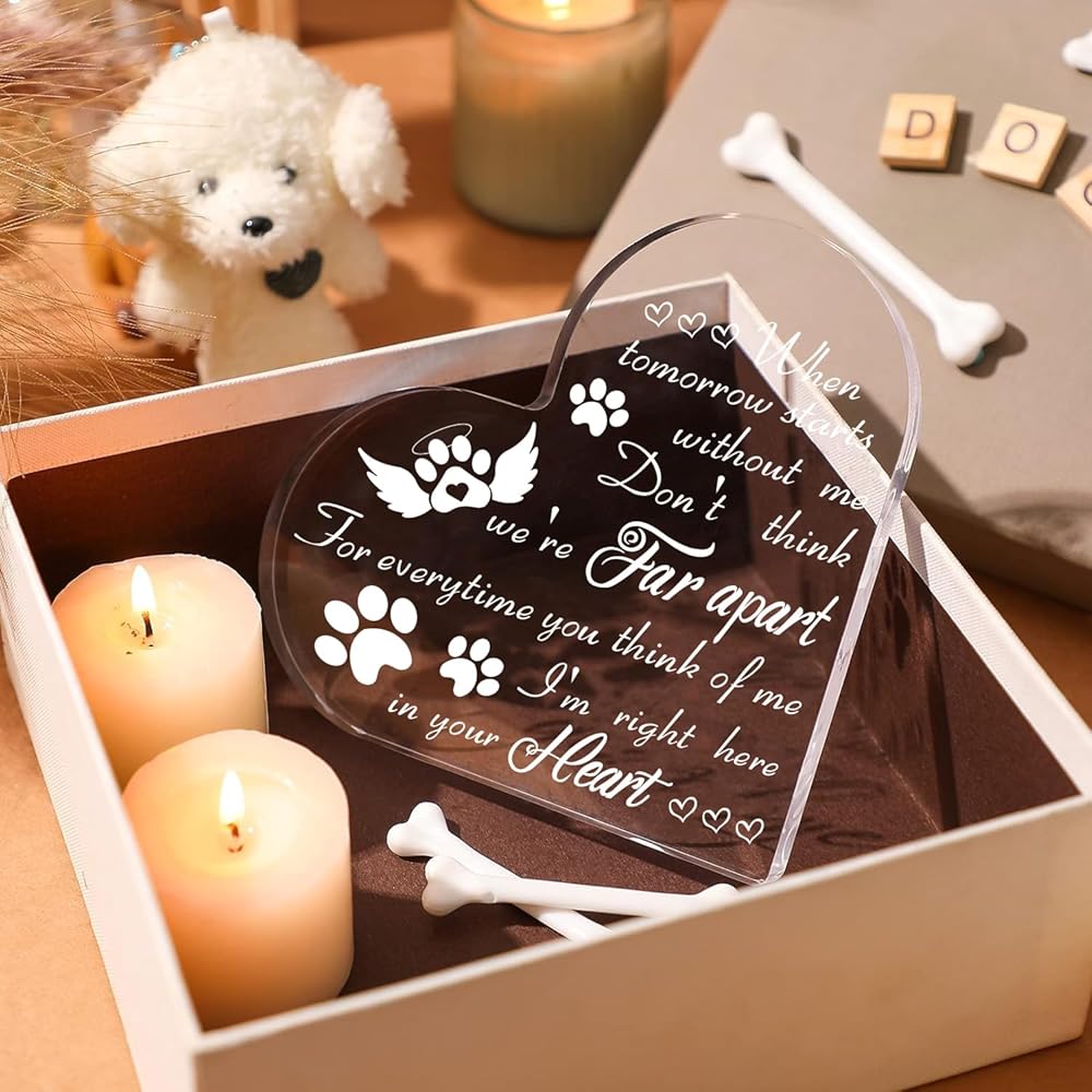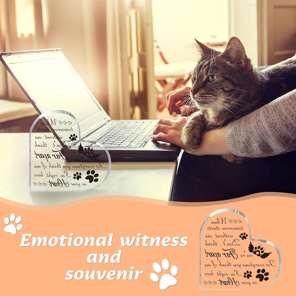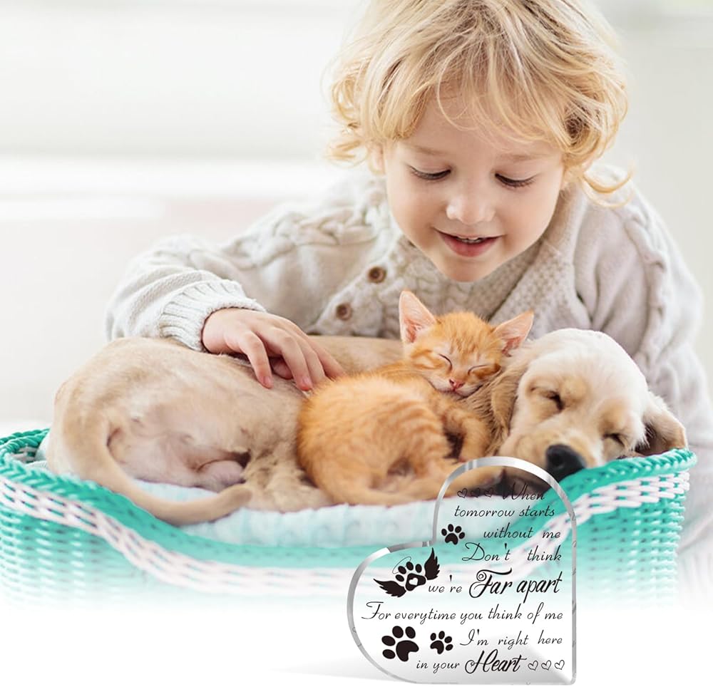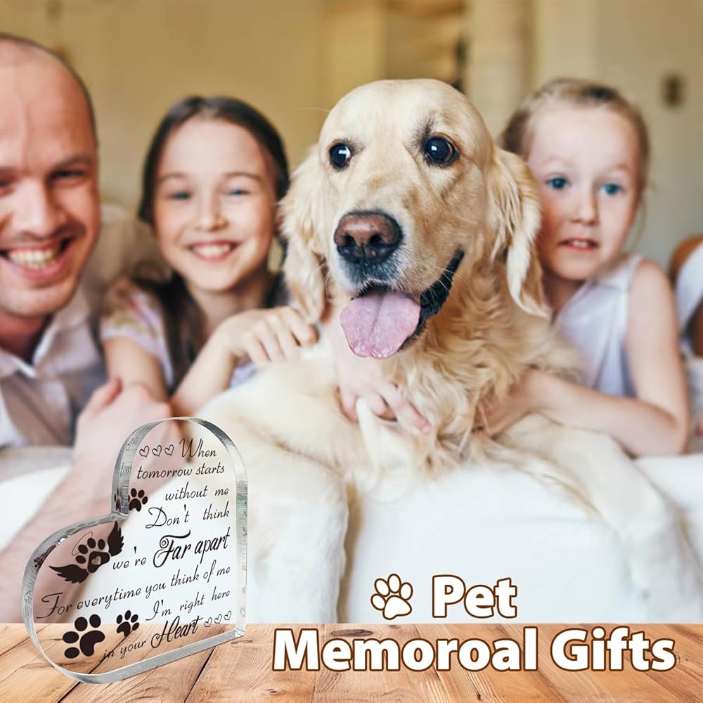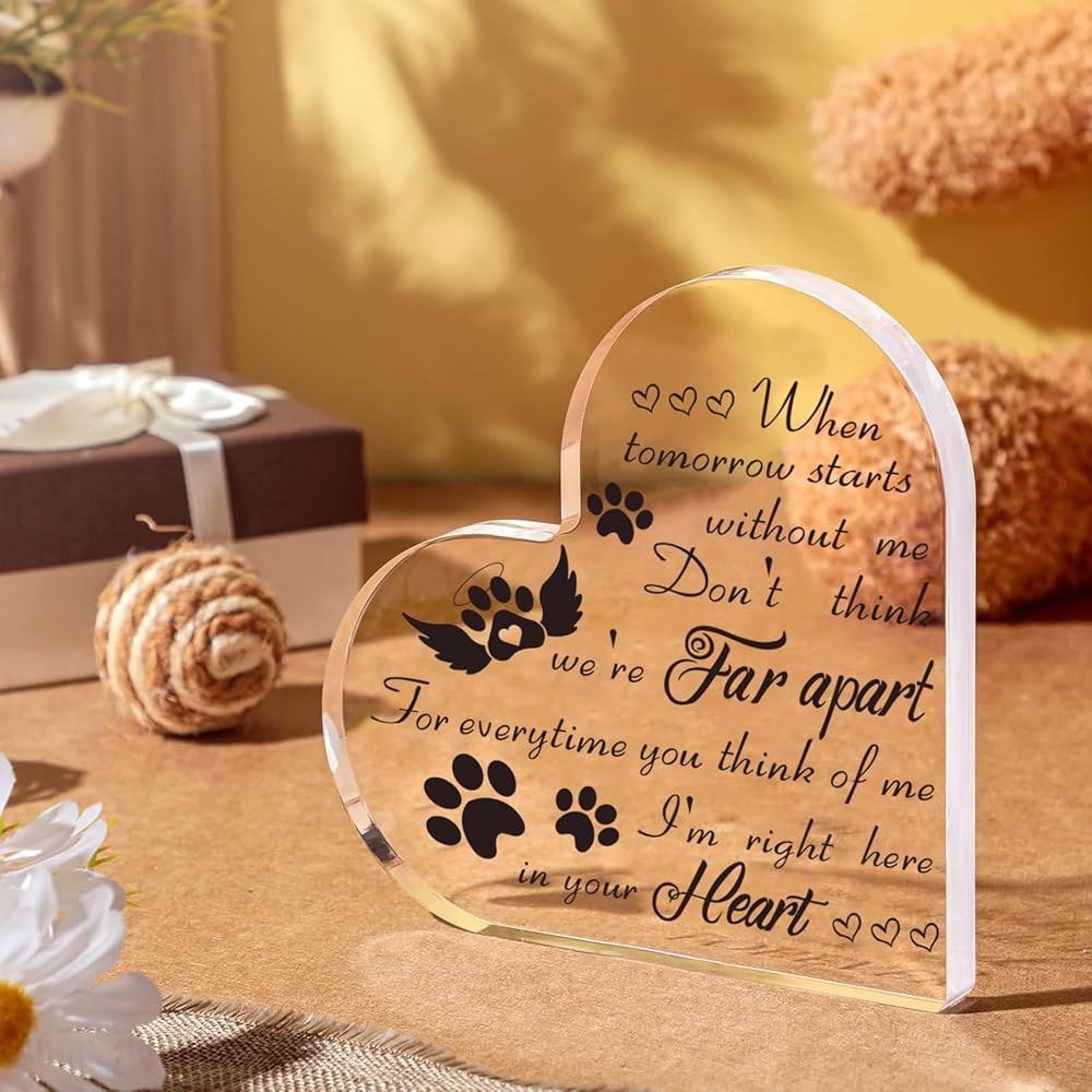 VESMATITY Pet Memorial Gifts Bereavement Remembrance Gifts for Loss of Dog Cat Sympathy Condolence Gifts Heart Shaped Crystal Acrylic Sign When Tomorrow Starts Without Me Plaque for Table Desk Decor