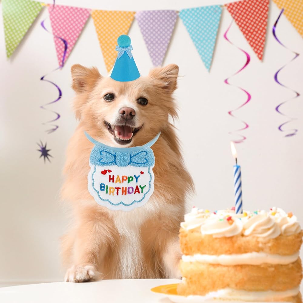 【Cute Cat Party Hat Set】 The hat is decorated with a fur ball, which is very cute. Cute bow shape at the top of the bib, and colorful "HAPPY BIRTHDAY" letters embroidery, cute and sophisticated, especially for your kitten's birthday party outfits. It's the perfect accessory for your cat's cute party outfits.