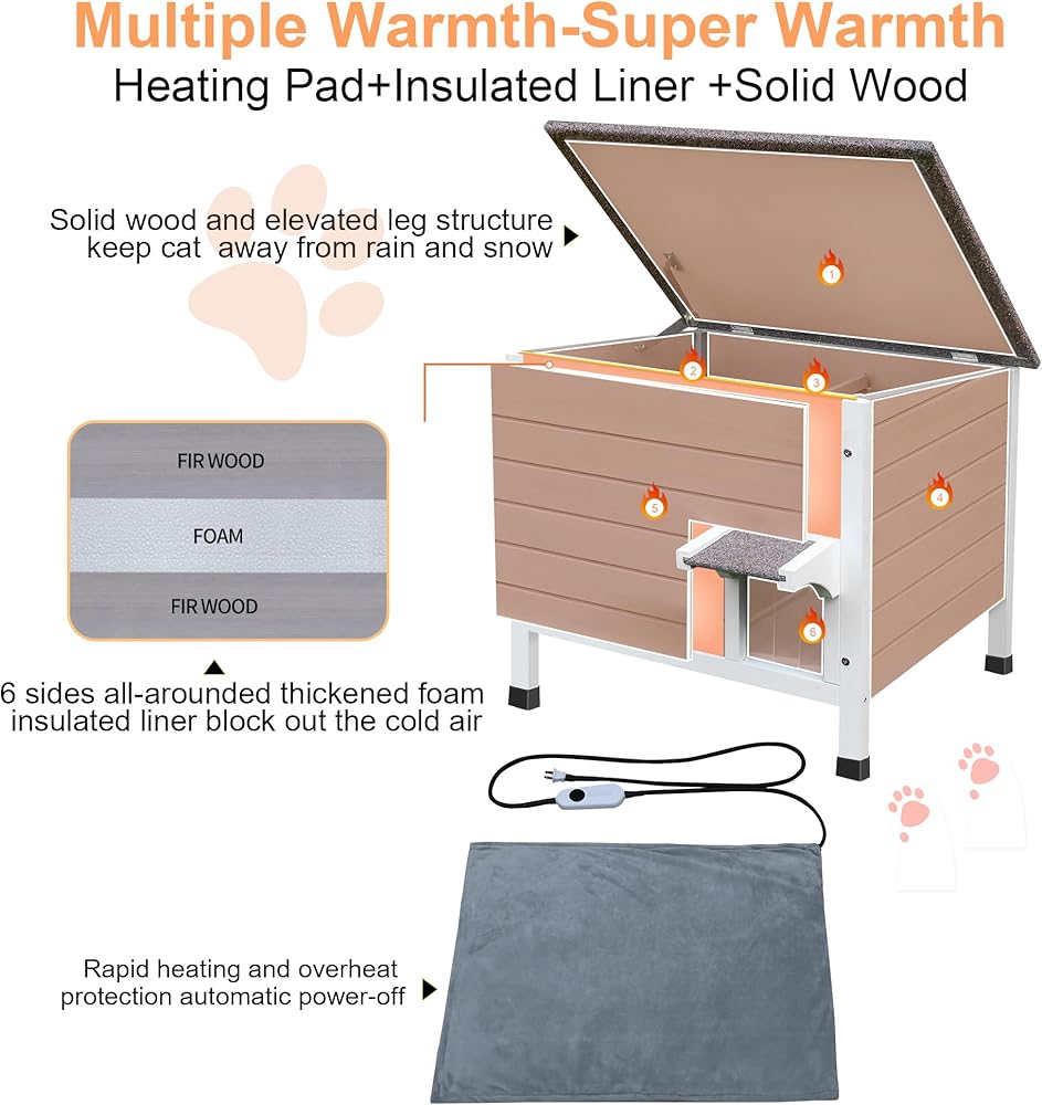 6-Sides Foam Insulation Layers: The 4 walls, floor and roof of the cat house are all added with foam insulation layers to provide all-round thermal insulation protection for cats.