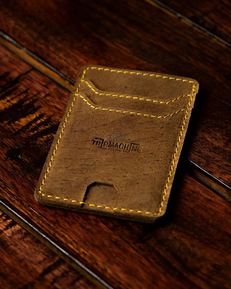 The wallet is handmade the traditional way, with 100% heavy duty signature trip machine leather. True to trip machine craftsmanship, there are no cheap cloth or rubber liners.