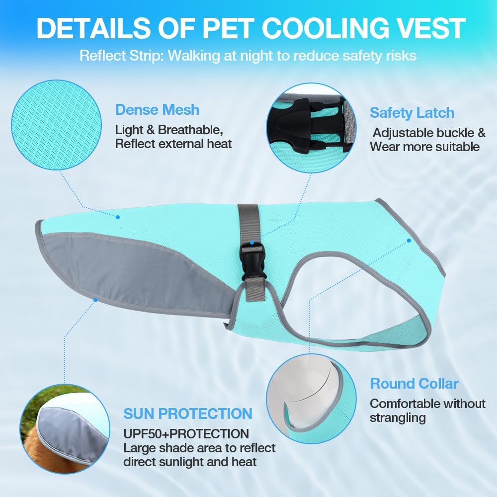 Dog Cooling Vest for Summer, Lightweight Jacket Dog Cooling Shirt, UV Protection Cooling Harness for Outdoor Activity with Breathable Mesh
