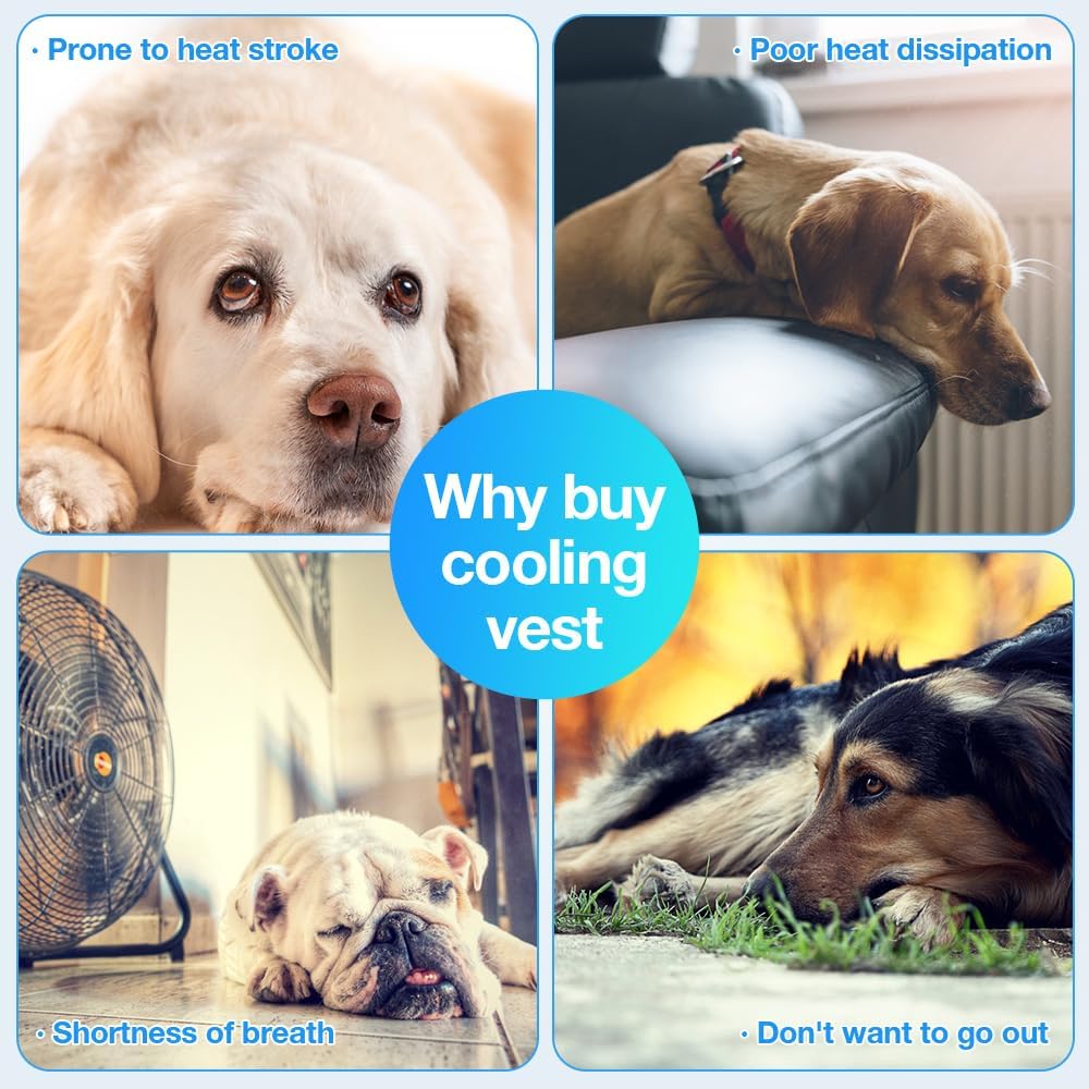 ❄️Very Easy To Put On - Simply pull the dog cooling vest over your dog's head and adjust the chest buckle to complete the fit and it won't slip off easily. Please measure your dog's chest and neck according to the size chart before ordering to ensure the most comfortable cooling for your dog.