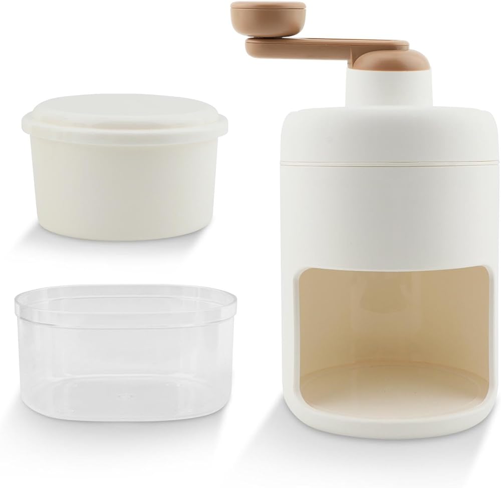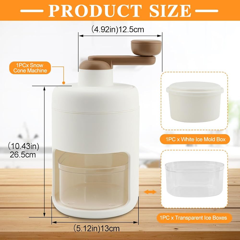 【PACKAGE CONTENT】You will receive 1pc manual ice crusher snow cone machine, 1pc transparent ice box and 2pcs white ice mold boxes, the practical set allows you to crush ice more easily and conveniently, suitable for home kitchens, restaurants, parties, bars, outdoor picnic, etc.