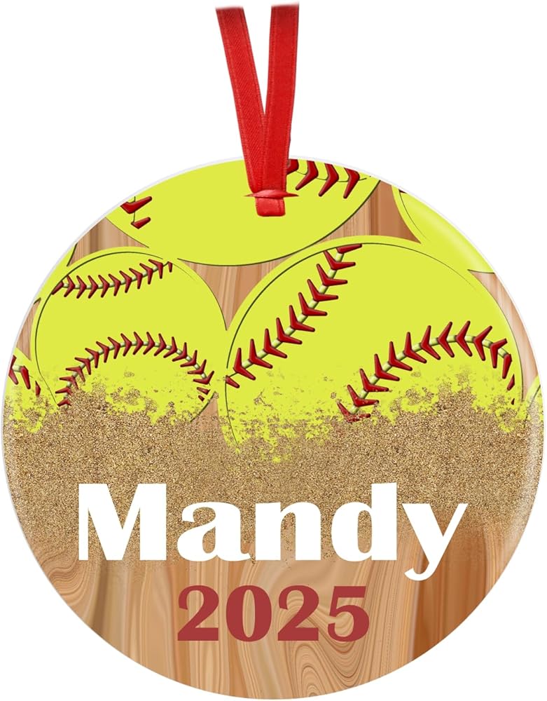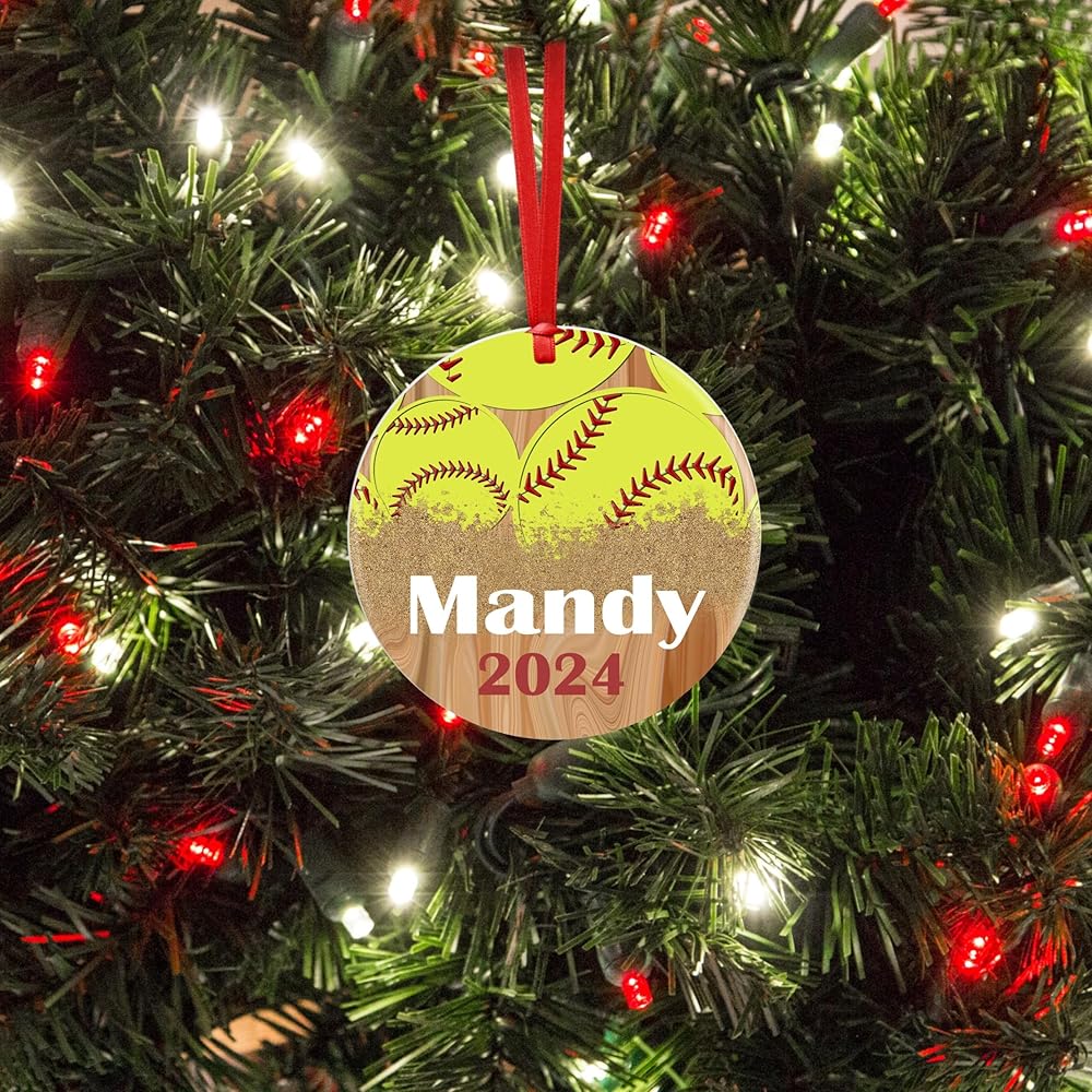 2024 Softball Theme Ornament for Your Favorite Softball Player to Hang on the Christmas Tree This Year. Includes a Red Satin Ribbon to Display Their Sports Decoarion for the Holiday