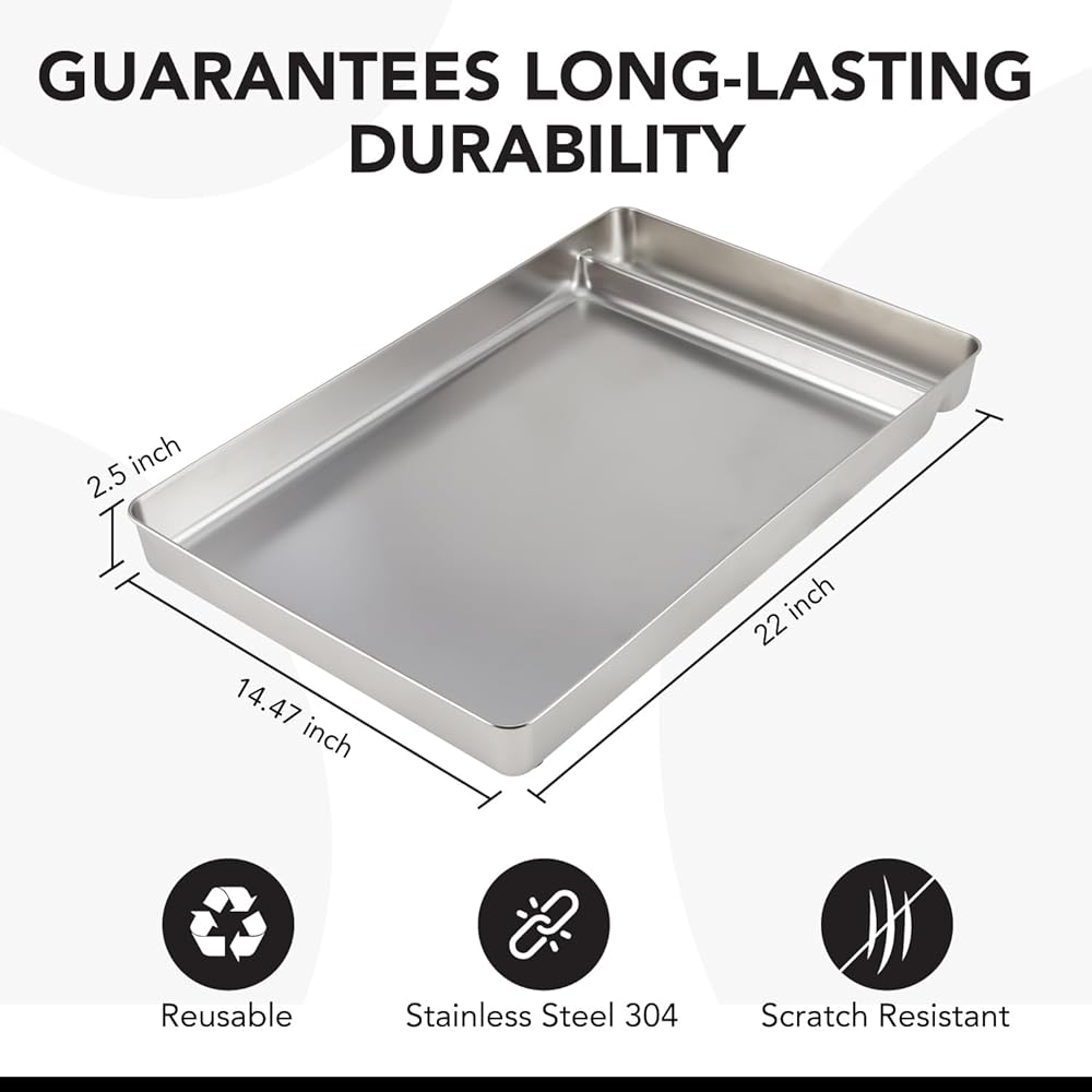 Durable: Unlike disposable trays that need frequent replacement and plastic trays prone to odors and stains, our stainless steel replacement tray offers unparalleled durability. Its non-porous surface prevents odor retention and stains, ensuring a cleaner and fresher litter box for your pet.