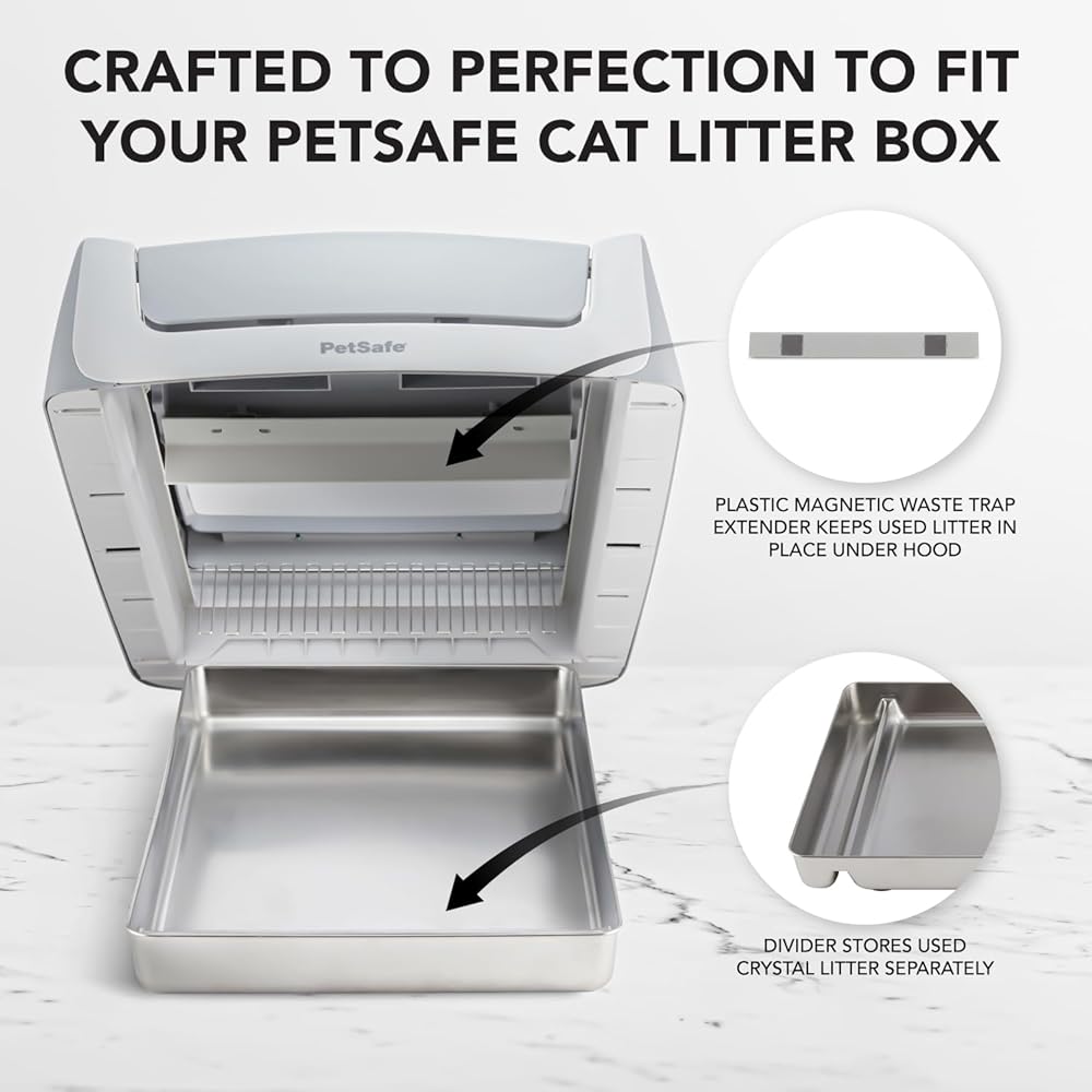 Compatibility: Our stainless steel replacement tray is designed to perfectly fit all PetSafe self-cleaning litter boxes, ensuring hassle-free installation and compatibility. Additionally, the included plastic magnetic waste extender ensures a secure fit and enhances the functionality of your litter box.