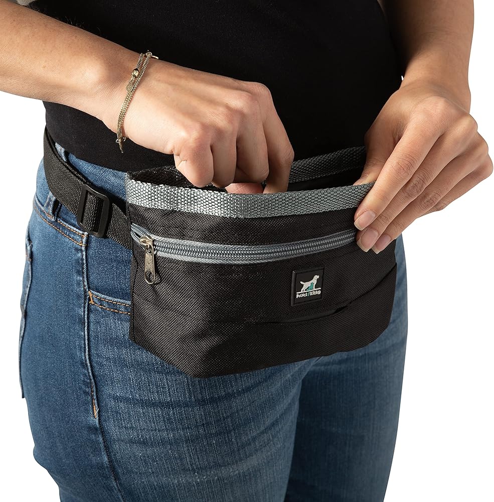 Pounce + Fetch has everything covered in one with the Treat and Training Pouch. Easily take with you on the go to have treats handy and waste bags dispensed in one conveniently designed pouch. An adjustable waist strap makes it comfortable to wear around your waist or the keychain clip allows you to clip to your bag or backpack. The treat bag holds up to 5 cups of treats at a time and is removable from the strap. The front pouch dispenses waste bags through a front slip. The best part of this is every purchase a portion of the proceeds are donated to PET RESCUES!