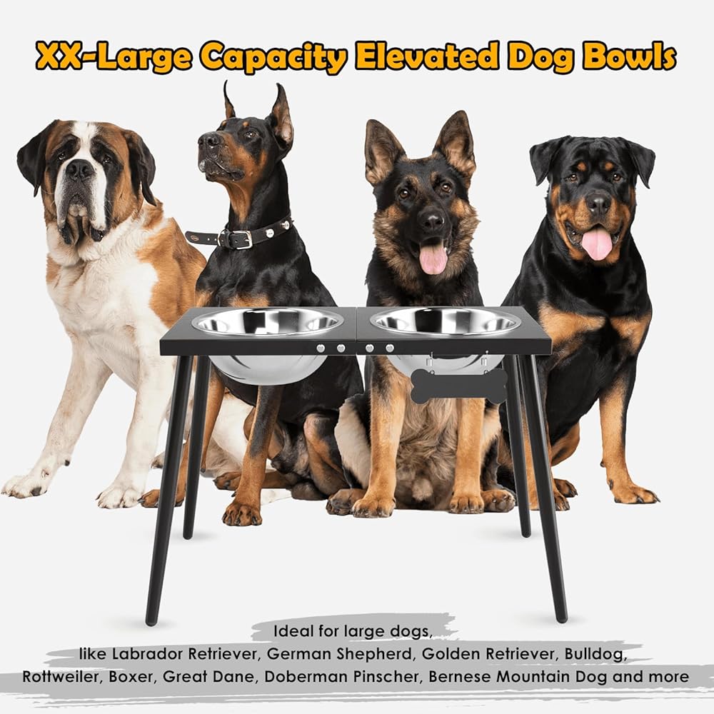 Metal Elevated Dog Bowls, 17in Tall Raised Dog Bowl Stand, with Feet Non-Slip Feeder with 3000ml Stainless Steel Bowl and Sprill Proof Mat for Extra Large Breeds