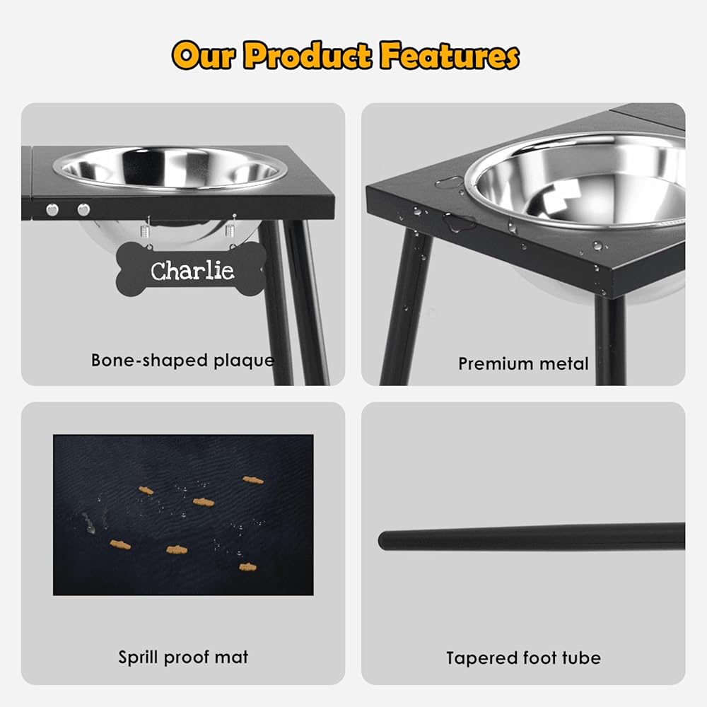 【EASY TO ASSEMBLE】The dog bowl holder set comes with assembly accessories and installation process instructions, the product can be installed / disassembled in two minutes without additional tools, very convenient.