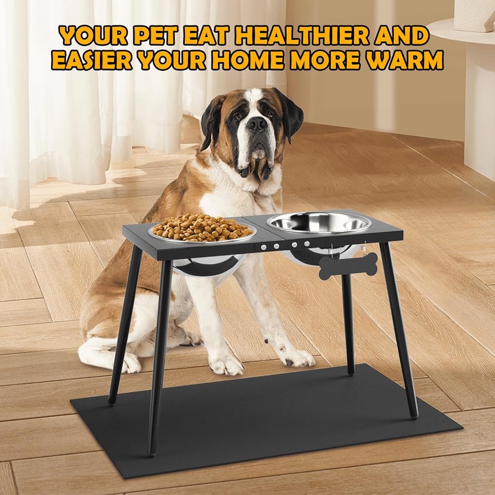 【KEEP EATING AREA DRY AND TIDY】The ADENGL Dog Bowl Rack with Splash Pad measures 20 x 32 inches, which you can place underneath the bowl rack, spilled food and water will be well collected by the splash pad, and the floor of the eating area will be kept dry and tidy.