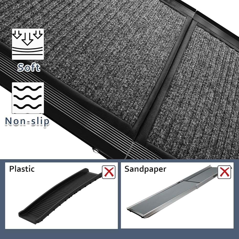 Sturdy and Durable folding Ramps-let you conveniently store it in vehicle or under your bed or sofa without taking up much space. It's waterproof and easy to clean after use.