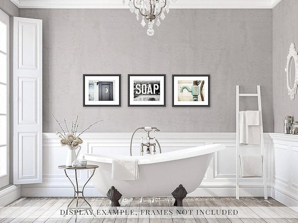 BATHROOM WALL ART: Transform your bathroom into a modern rustic retreat with this set of 3 photo prints. This wall decor set combines the timeless appeal of modern farmhouse style with versatile blue, aqua and teal colors