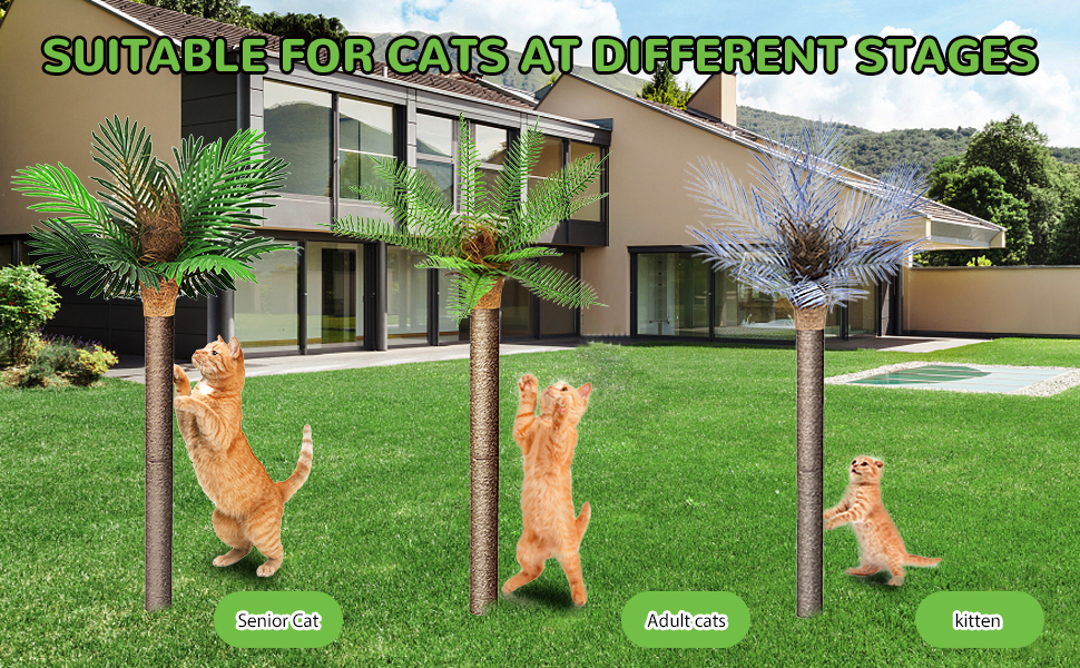 CAT SCRATCHING POSTS - the 100% Natural Sisal scratching posts are ideal for cats to scratch and stretch, very close to the trees which cats grinding their claw in nature, the sisal rope is long life lasting, it will last for years before wear out by cats, helps to keep the long term health of your cat's nails and keeping them away from your curtains and sofa