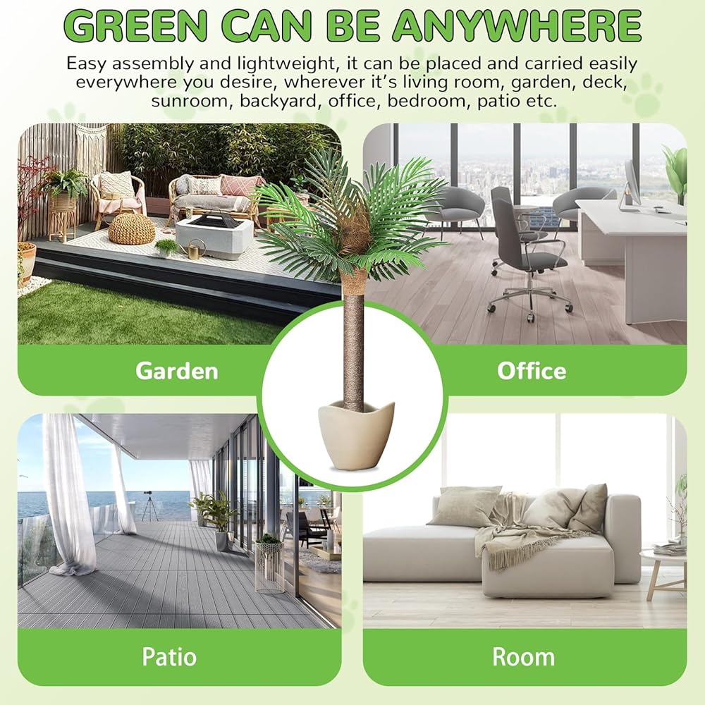 HOME DECOR - A beautiful lifelike plant is perfect to decor any household or garden for year-round greenery. With this tropic palm tree, your garden will look "sunny" no matter what the weather is outside. This 4' height is high enough to match any environment indoor and outdoor, once open the branches It looks so real, Ideal for any decor and also makes a perfect gift