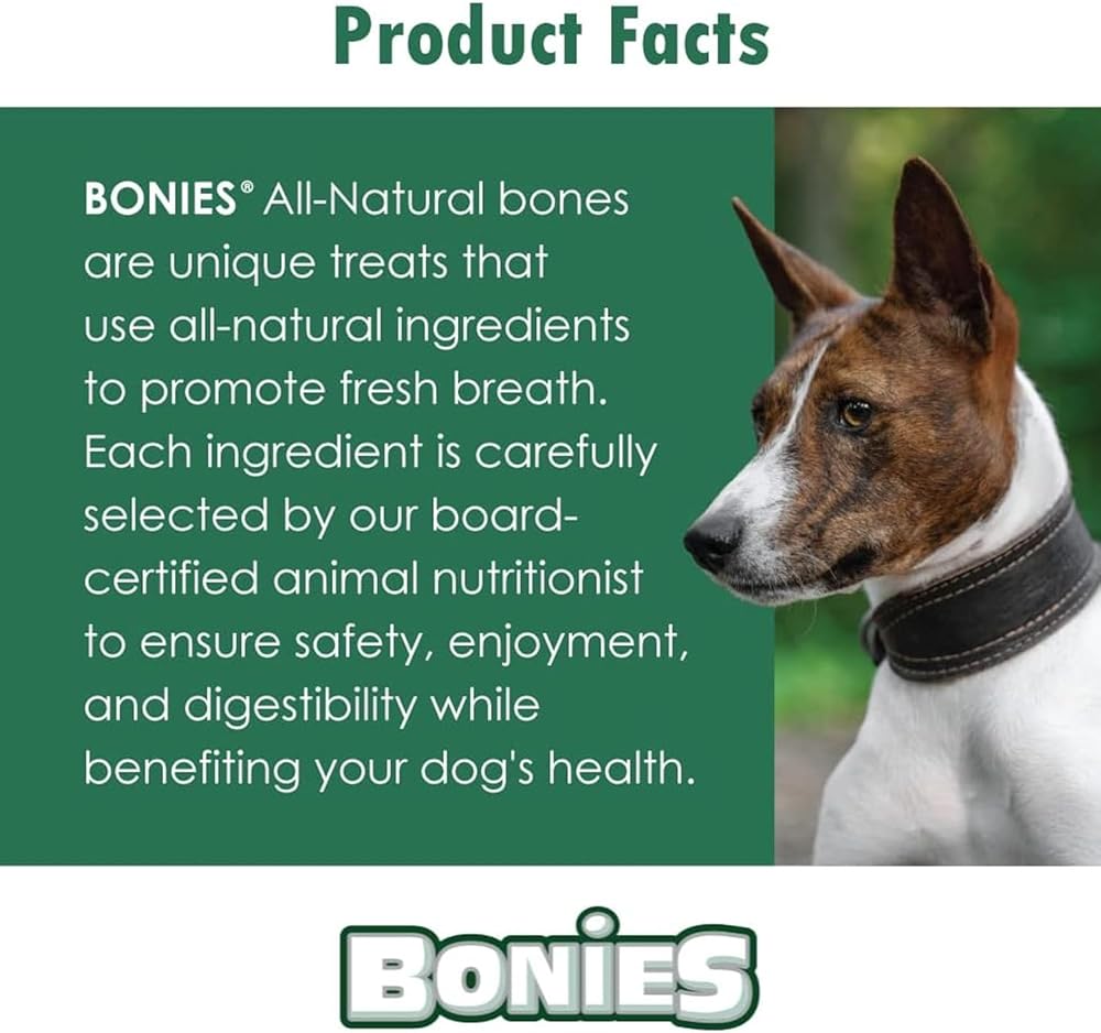 FOR DOGS OF ALL SIZES: Bonies are available in four sizes to accommodate any dog! These are great chew bones to give your pup as part of their dental care routine or as healthy treat.