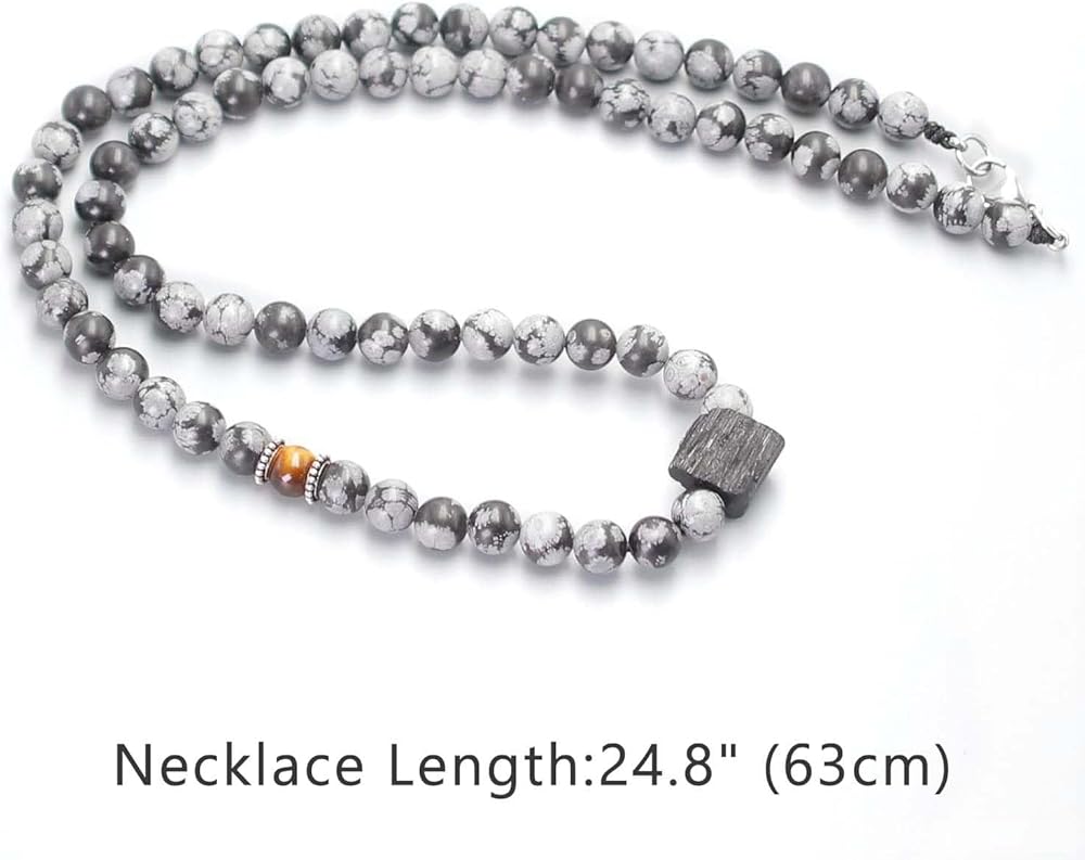 Handmade Jewelry: Each stone is carefully selected to ensure excellent quality, mens snowflake obsidian bead necklace is crafted carefully by skilled craftsman. From selection, polished to packaging, every step is done by hand.