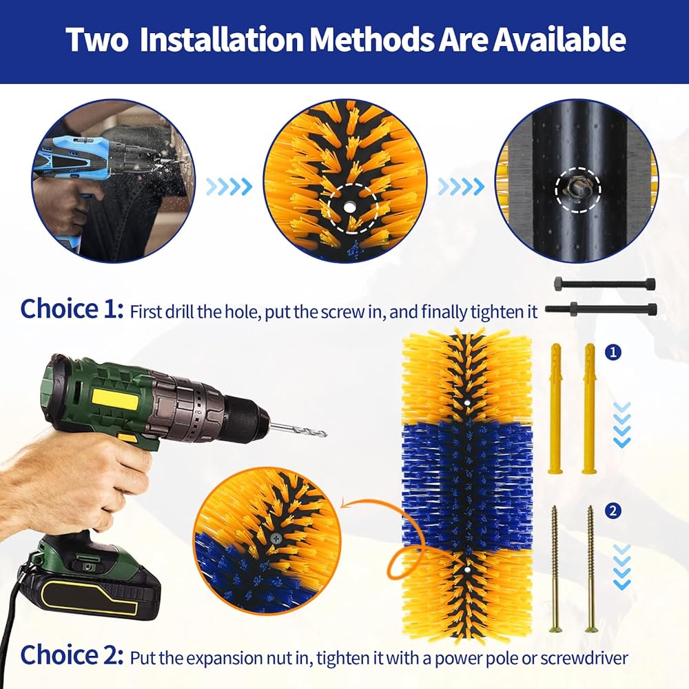 【Easy to Install】: Our cattle scratcher have added two screws to help fix the brush firmly where you want it. It can be easily installed in your corral, barn or outdoors, and it is very sturdy (also suitable for walls).
