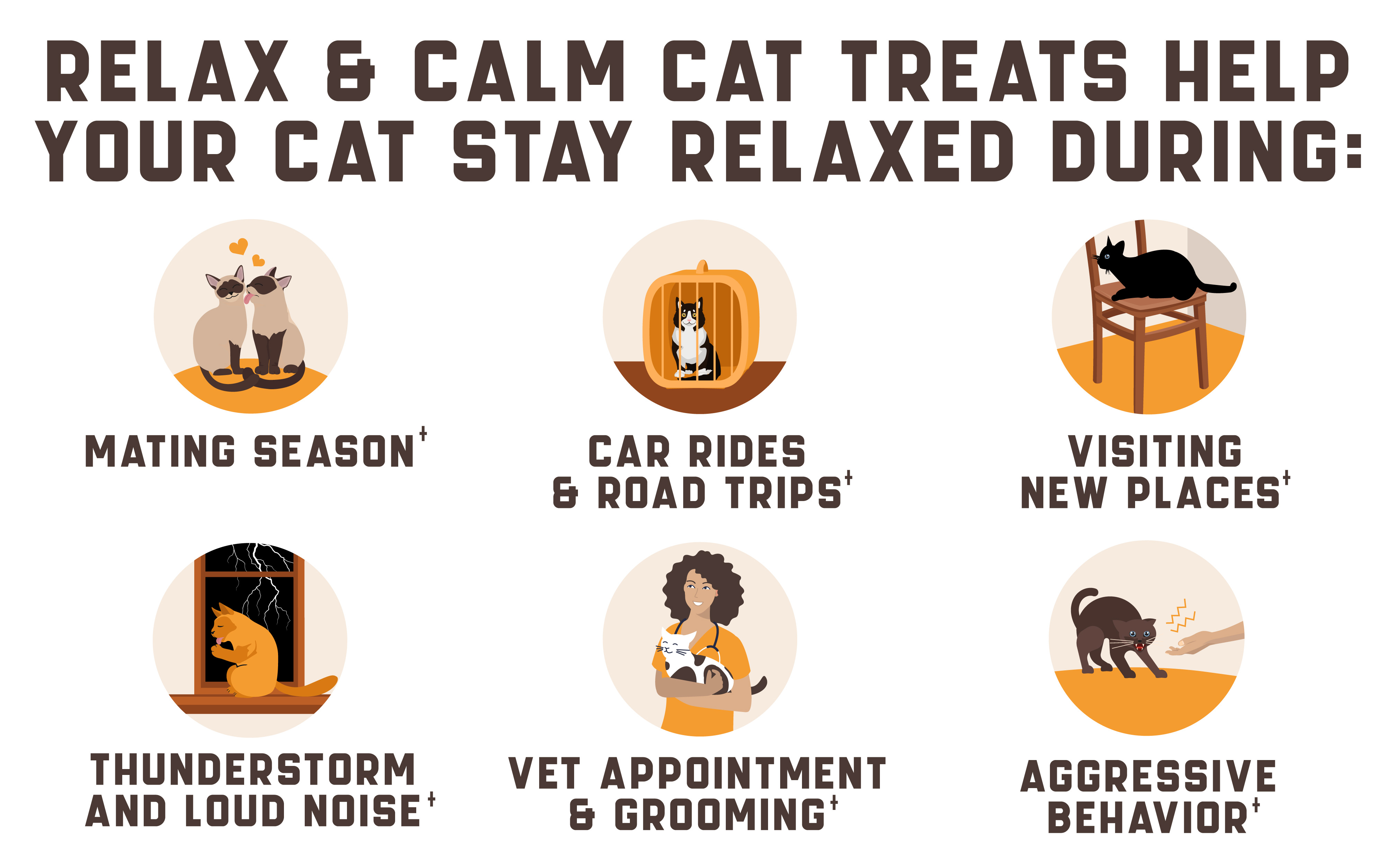 Promote Relaxation: These calming treats for cats support calm behavior and a peaceful state of mind. They help maintain a joyful demeanor during thunderstorms, car rides, separation, grooming, fireworks, and vet visits.