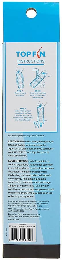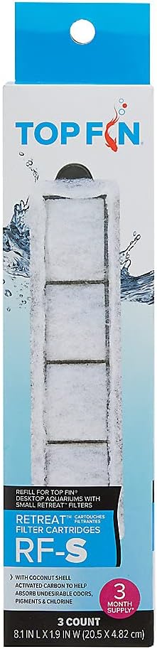 Keep your aquarium's water clean and healthy with Top Fin RF-S Small Retreat Filter Cartridges. These cartridges are easily replaceable and feature coconut shell activated carbon, which serves to absorb undesirable odors, pigments and chlorine.