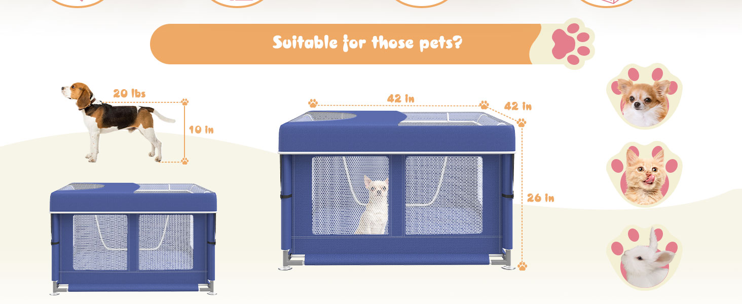 NOTE: Dog playpen outdoors fits small to medium-sized dogs - pets up to 10 inches tall at the shoulder and up to 20 pounds in weight!