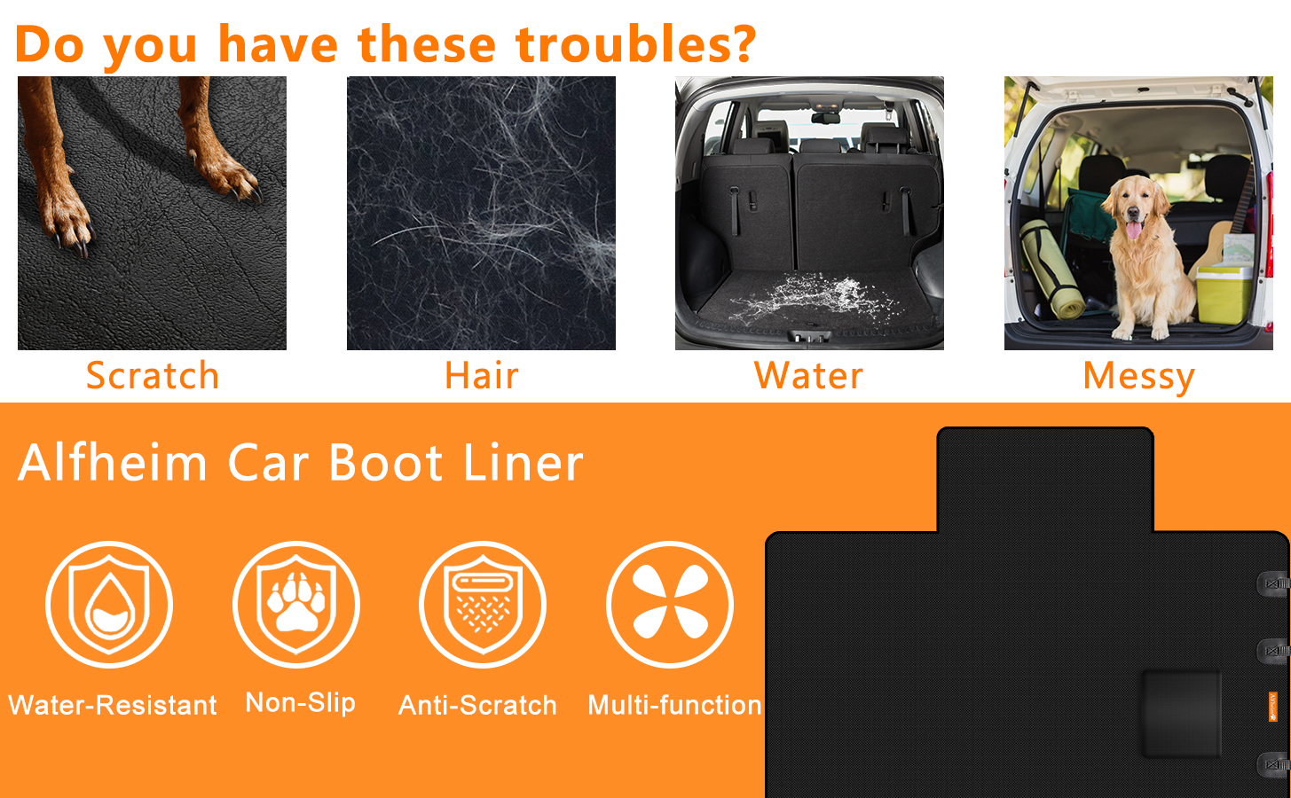 ✅【No Slip & Multi-Function】You don't want your pup to be tossed back and forth when you're on the go! That's why our cover has a rubberized backing that allows it to stay in place through every turn have to worry about dirt, dander or claw marks on your seats. Alfheim boot liner cover can be used at the time of camping or any other situation that needs liner. There are a handy pocket for you to keep your things.