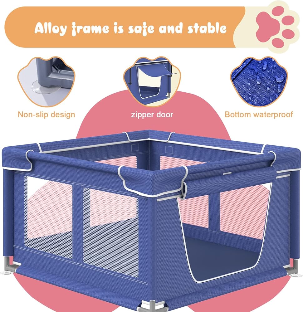Dog Playpen 42 × 42 Inch, Puppy PlayPen with Gate for Puppies, Small and Medium Dogs, Pet PlayPen for Outdoors & Indoors, Tear Resistant Fabric, Safe and Sturdy Dog, Blue