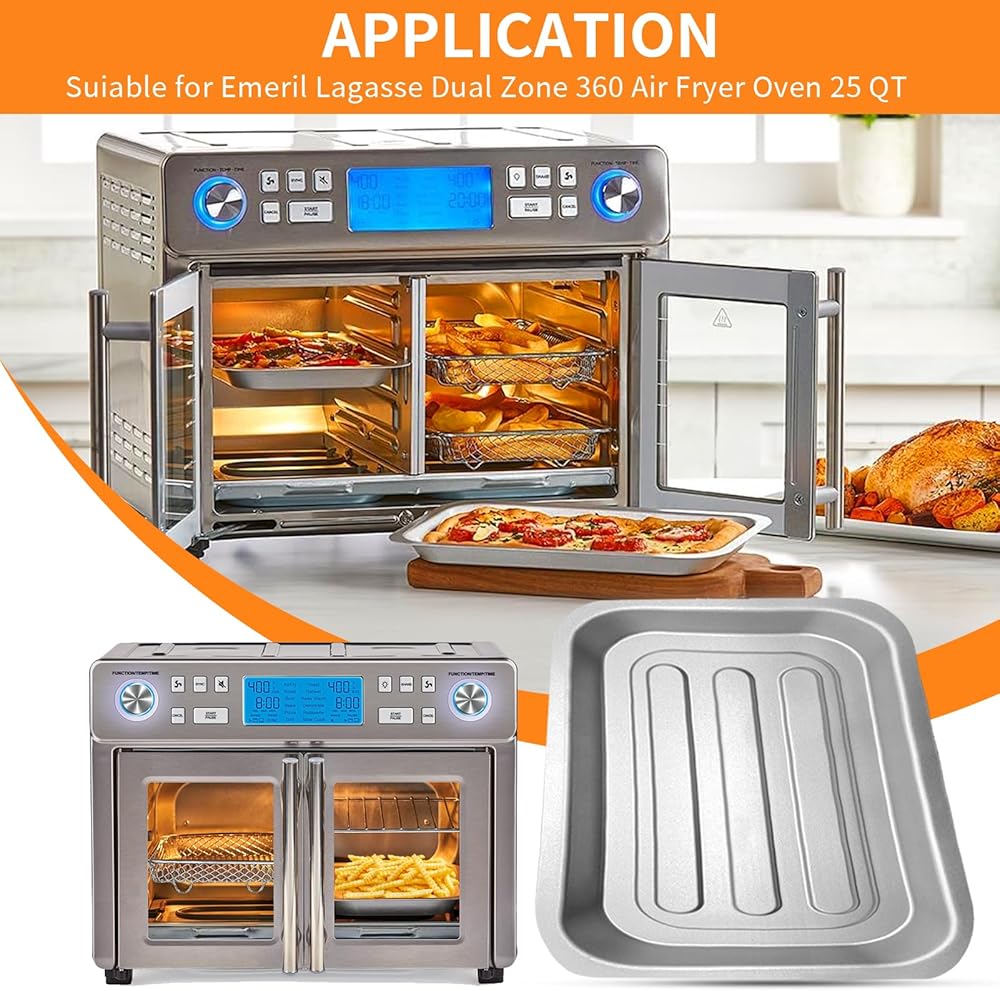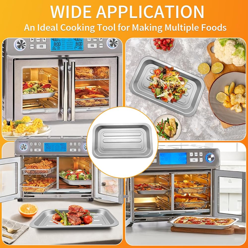 ->Made of premium stainless steel, the air fryer tray is high temperature resistant, has no deformation, and is durable.